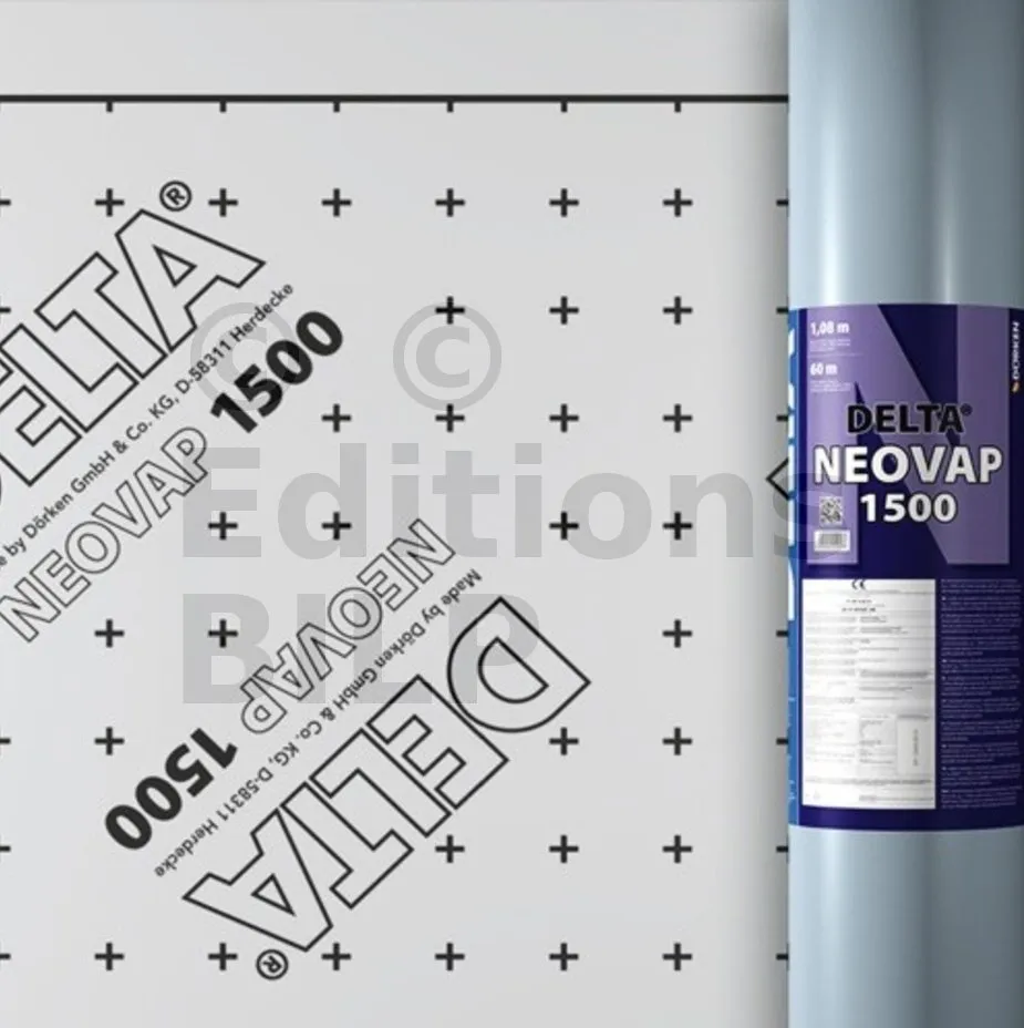 DELTA® -NEOVAP 1500 : Membrane d’étanchéité à l’air auto-adhésive et fortement étanche à la vapeur d’eau - 1.08x60m - CDT : Rouleau de 60m (64.8m²) - Réf. 02207463