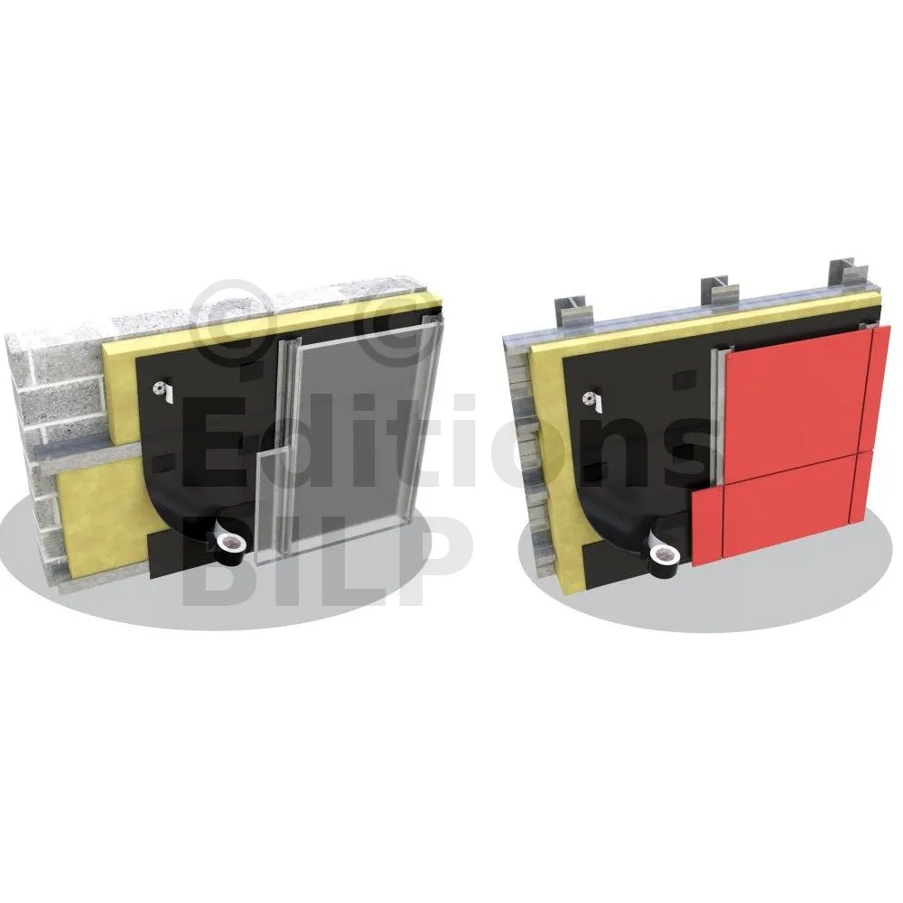 - Si fixation définitive, elle est assurée par apposition d’un profilé verticale de maintien du pare-pluie avec un entraxe maxi = 645mm.