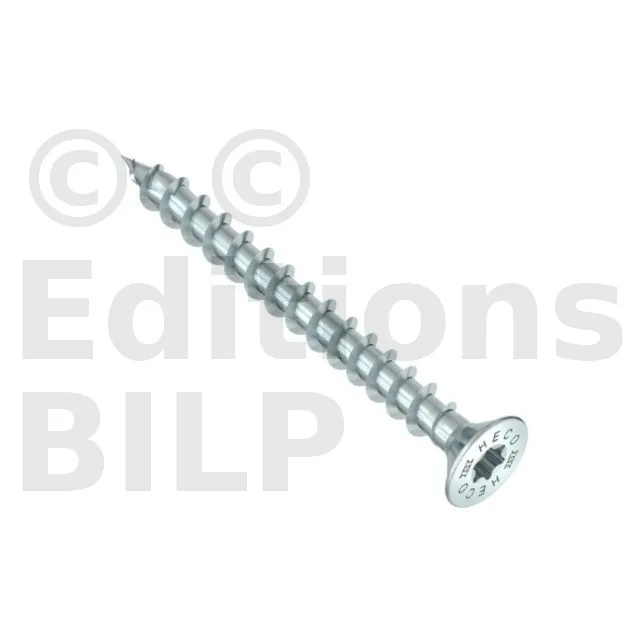 HECO-TOPIX-plus, vis de pose, tête fraisée à poches de fraisage, HECO-Drive, filet total variable, zingué blanc, A3K - Réf. 60781