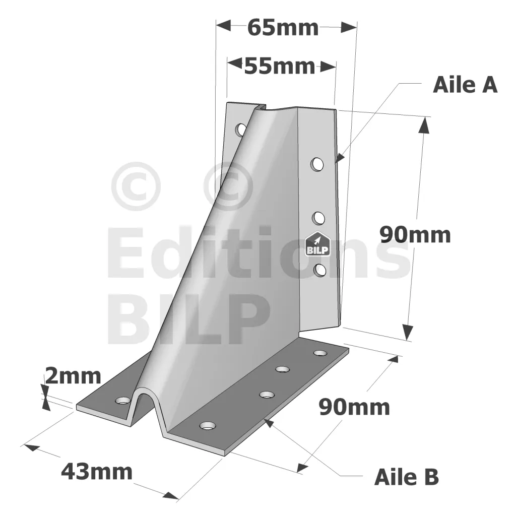 | Références | Dimensions [mm] | Perçages Aile A | Perçages Aile B | |||||