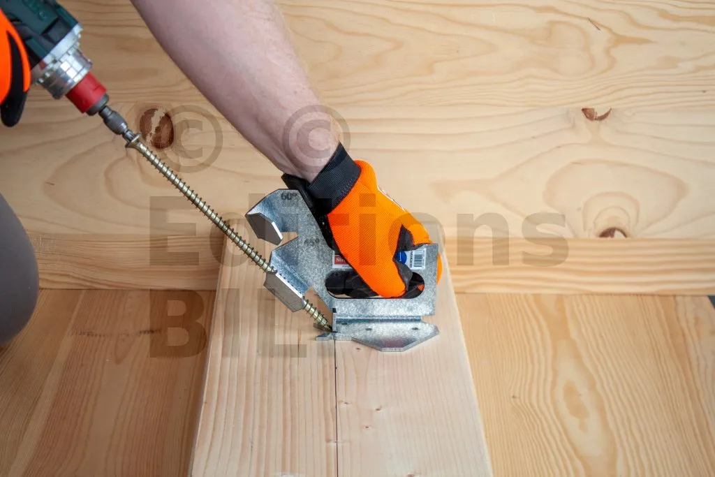 - Ce gabarit trouve son utilité avec les gammes de vis filetage total ou vis sarking car l’angle de vissage est majoritairement à 45° ou à 60°. Il peut toutefois être utilisé pour n’importe quel type de vis de longueur supérieure à 100 mm pour une configuration à 45°, et supérieure à 140 mm pour une configuration à 60°.