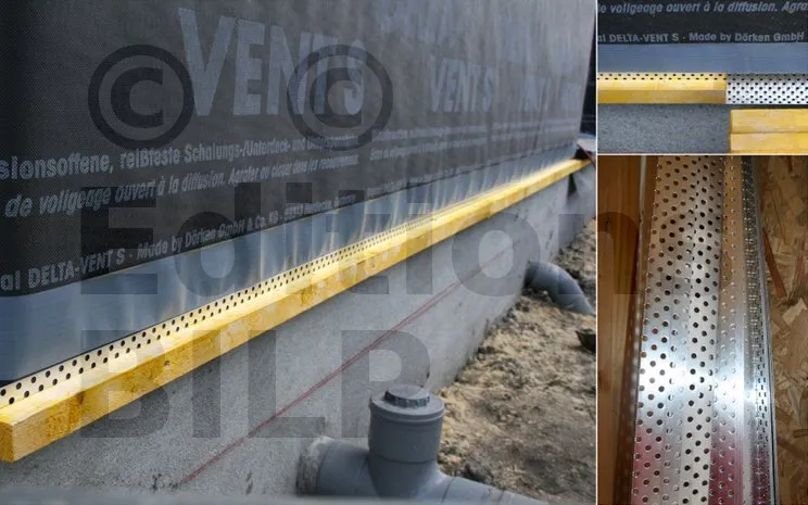 - Assure l’entrée d’air au niveau du raccord bas d’un parement extérieur de construction à ossature bois.