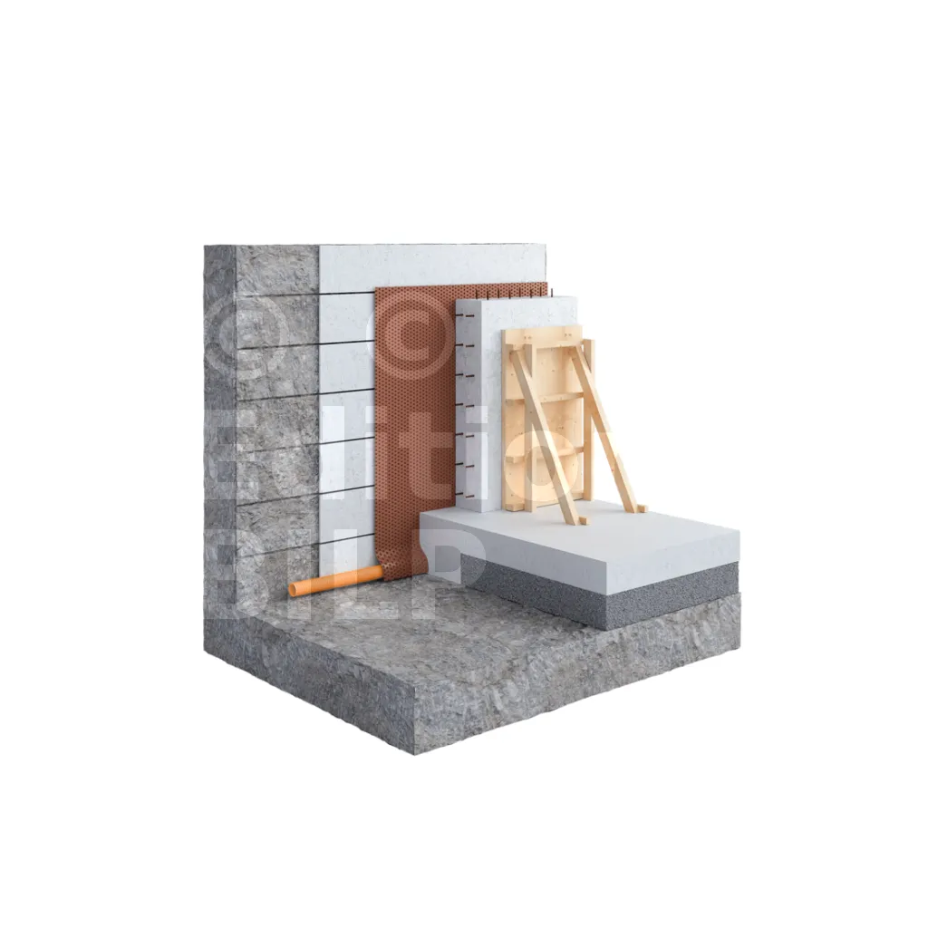 - Comme coffrage perdu, DELTA®-MS 20 peut être utilisé de façon économique entre la paroi berlinoise en béton (projeté/coulé) et la paroi en béton de l’ouvrage.