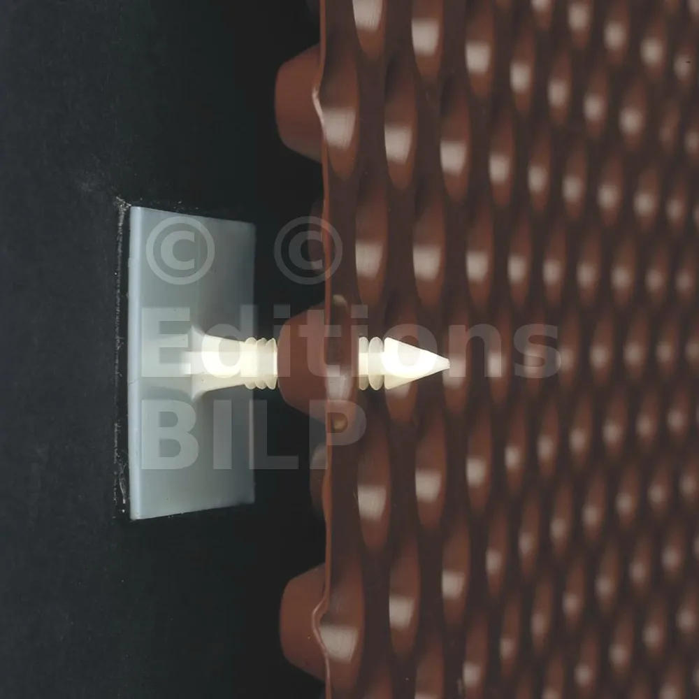- Le Clou Adhésif DELTA® permet de connecter les lés verticaux et horizontaux successifs lorsque l’étanchéité ne peut pas être percée.