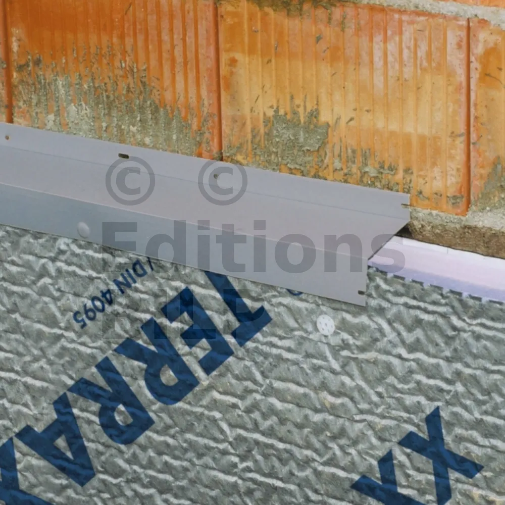 Le profilé en PVC rainuré est un matériau synthétique utilisé pour la finition de la tête des parois enterrées lorsque la nappe à excroissances DELTA® est posée sur une isolation thermique.