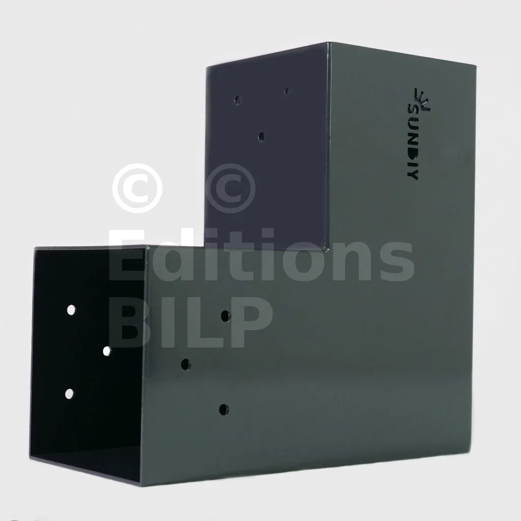Il est utilisé dans un angle extérieur. Ce connecteur va permettre de raccorder une poutre 90x90mm perpendiculairement à une autre poutre ou à un poteau vertical 90x90mm.