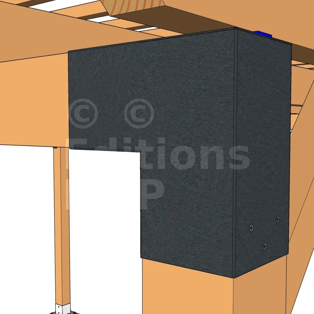 Il est utilisé dans un angle extérieur. Ce connecteur va permettre de raccorder une grosse poutre 120x120mm perpendiculairement à une autre poutre ou à un poteau vertical 120x120mm.
