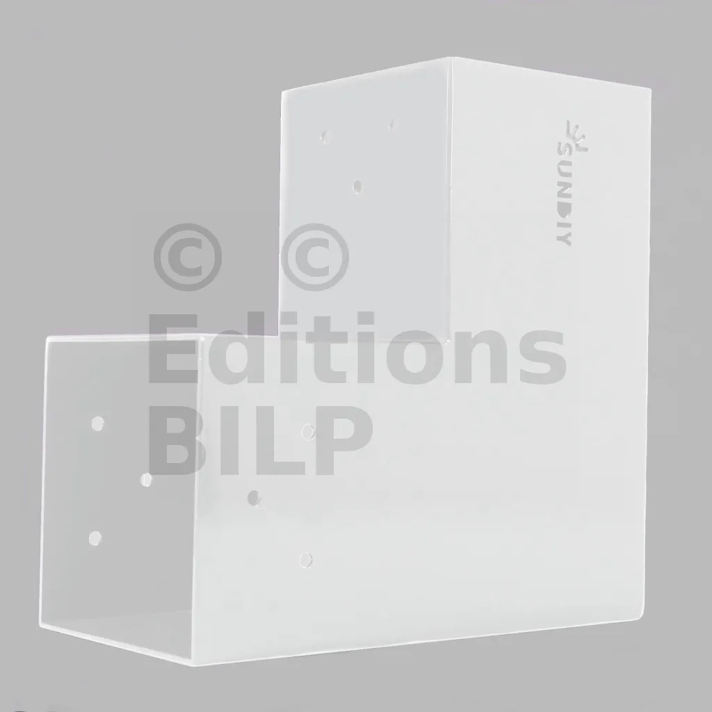 Il est utilisé dans un angle extérieur. Ce connecteur va permettre de raccorder une grosse poutre 120x120mm perpendiculairement à une autre poutre ou à un poteau vertical 120x120mm.