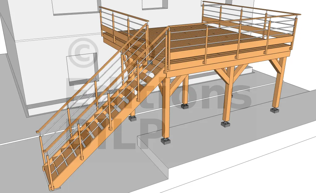 Une terrasse en bois, ce n’est pas qu’un platelage rectangulaire. Il existe des dispositions spéciales et des équipements à réaliser :