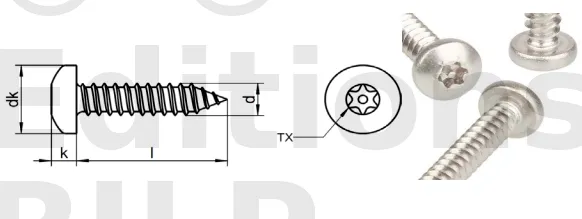 3) Rainure hexalobulaire TX (Torx) : Cette rainure spécifique est conçue pour être utilisée avec un embout Torx, offrant une meilleure prise en main et une transmission de couple efficace lors du serrage.