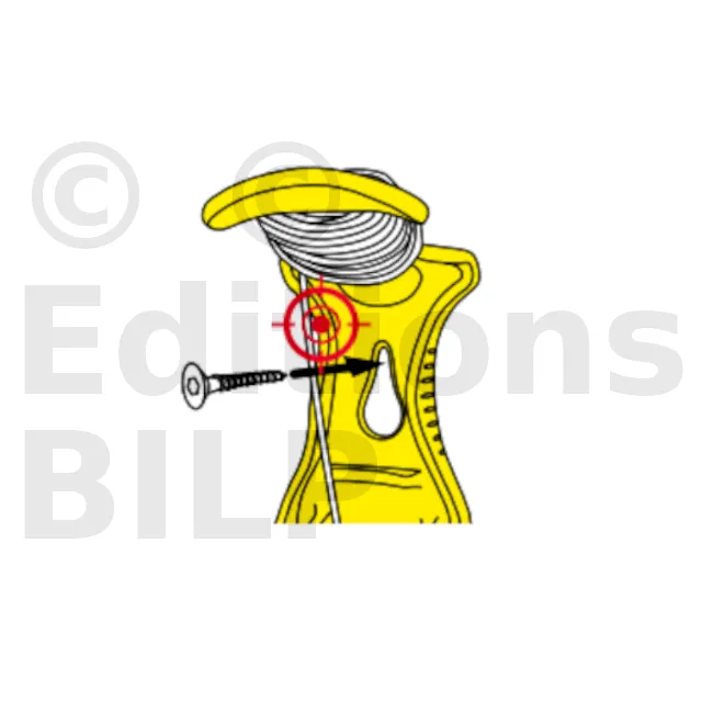- d’une monture en polymère perforée de couleur jaune vif. La perforation permet de le fixer à une vis, des clous ou autres et de libérer la main de l’utilisateur, tandis que la couleur facilite son identification sur le chantier.
