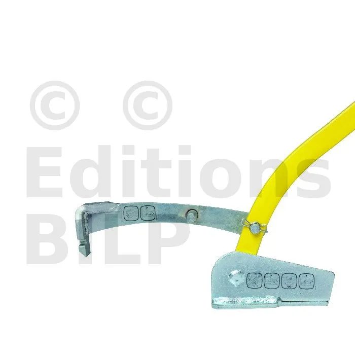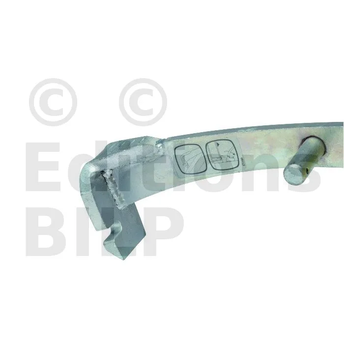 – Crochet biseauté en acier haute résistance renforcé et platine d’une épaisseur de 8mm. Ce crochet biseauté facilite la pénétration dans la traverse inférieure pour tirer les murs vides.