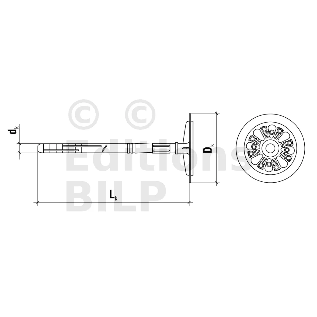 Cheville d’isolation à frapper avec clou en plastique, avec plaque de fixation coulissante - Réf. FIXPLUG08110(200)