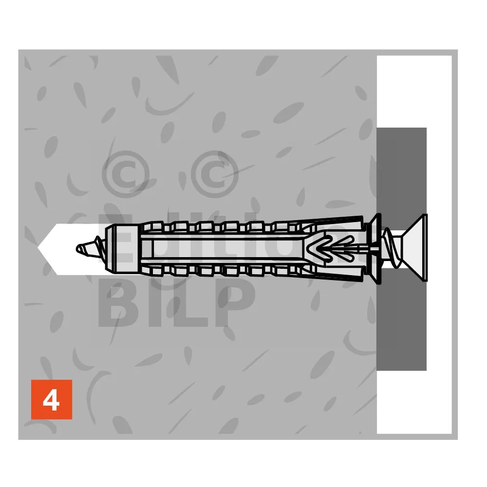 - Forme conique et ailes sous tête, permettant un excellent maintien de la cheville même si le perçage est irrégulier,