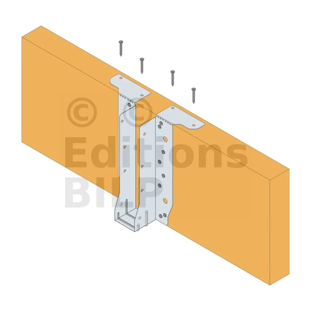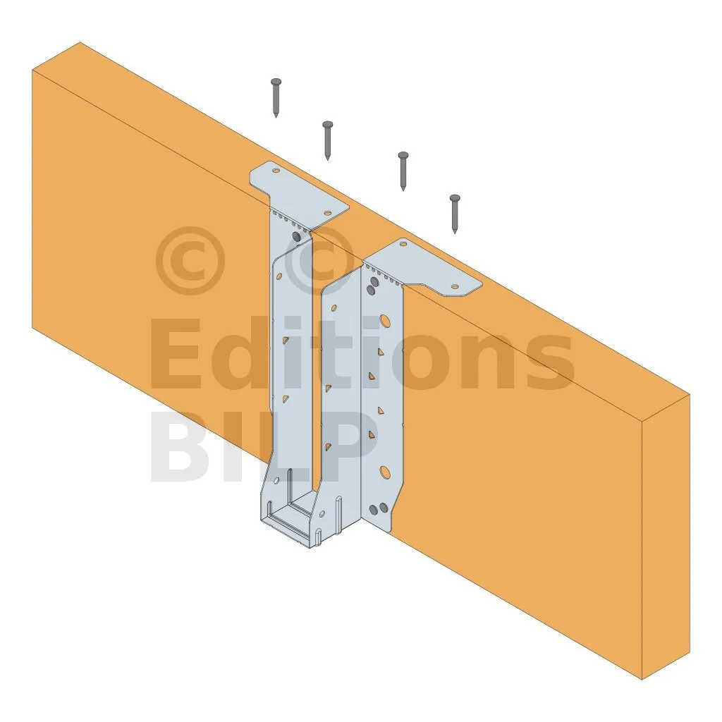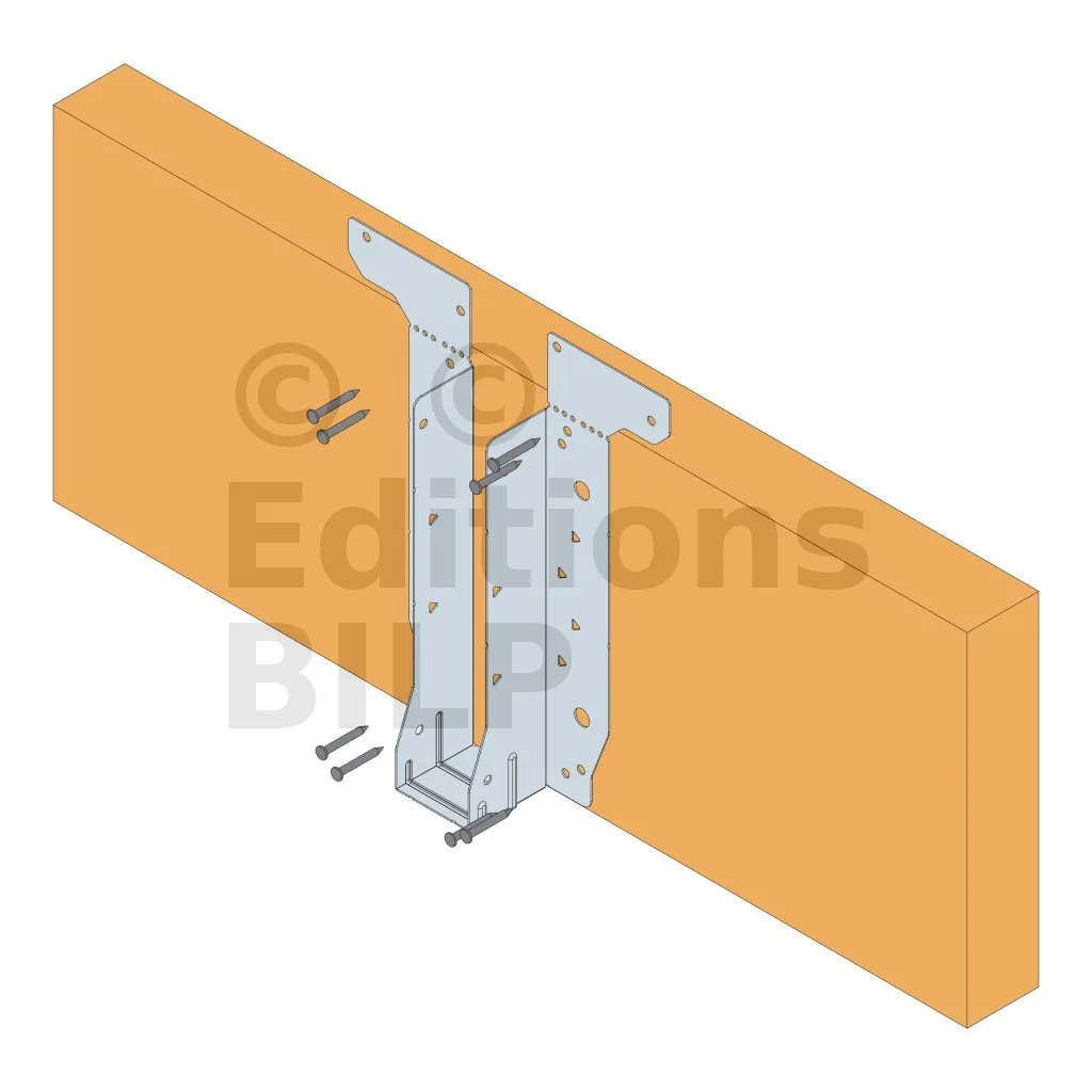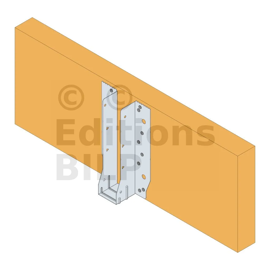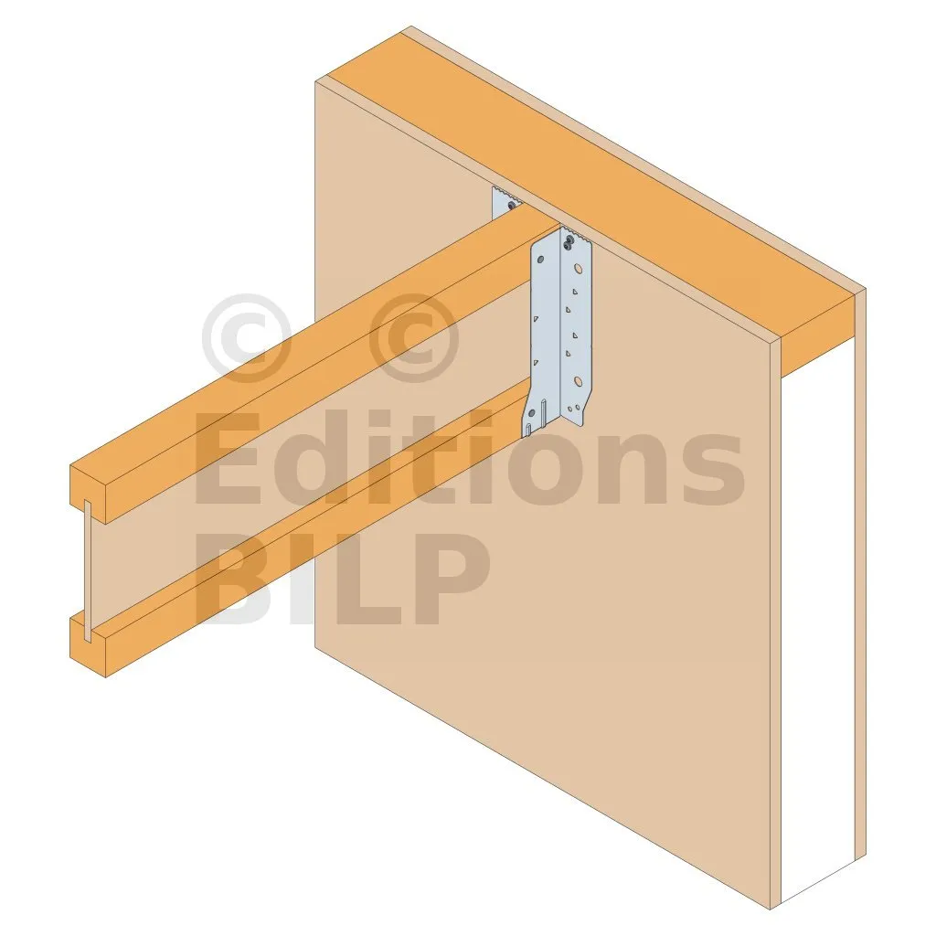 - Cette languette peut être pliée vers le haut pour les cas où le bas de solive n’est pas aligné sur le support.