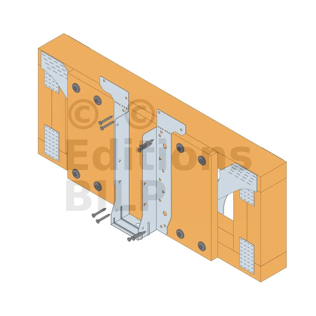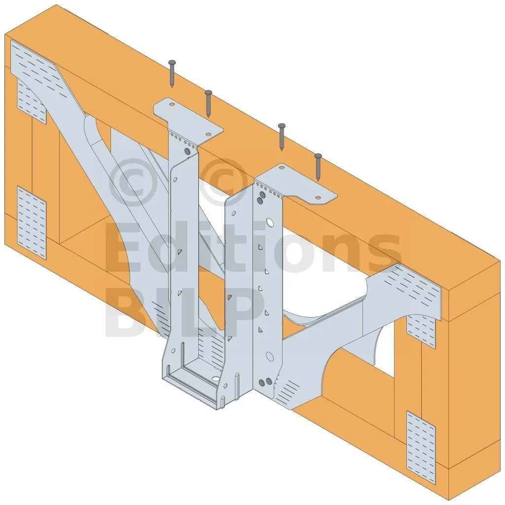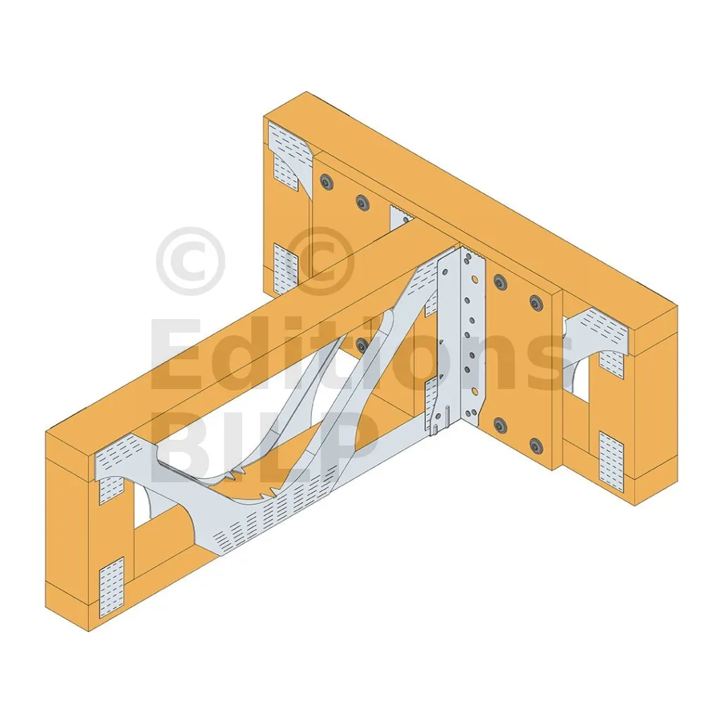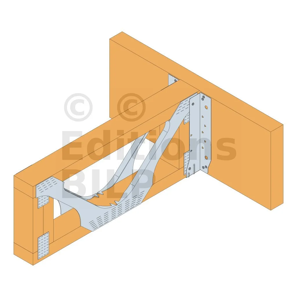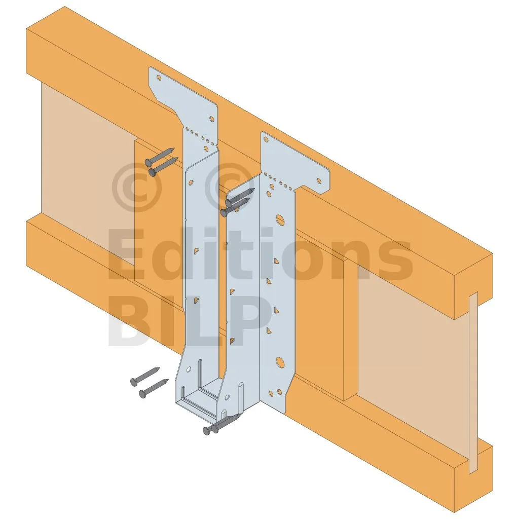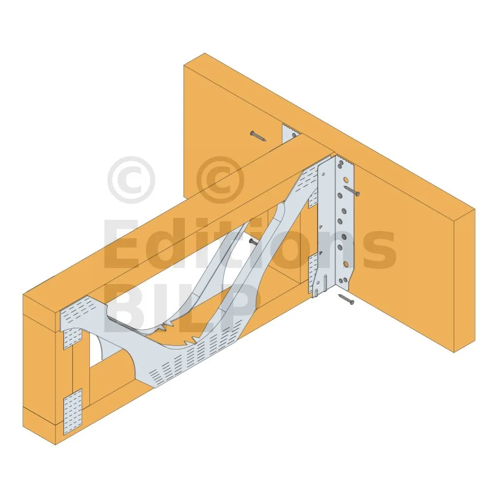 - Cette languette peut être pliée vers le haut pour les cas où le bas de solive n’est pas aligné sur le support.