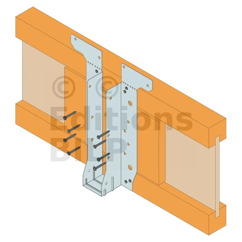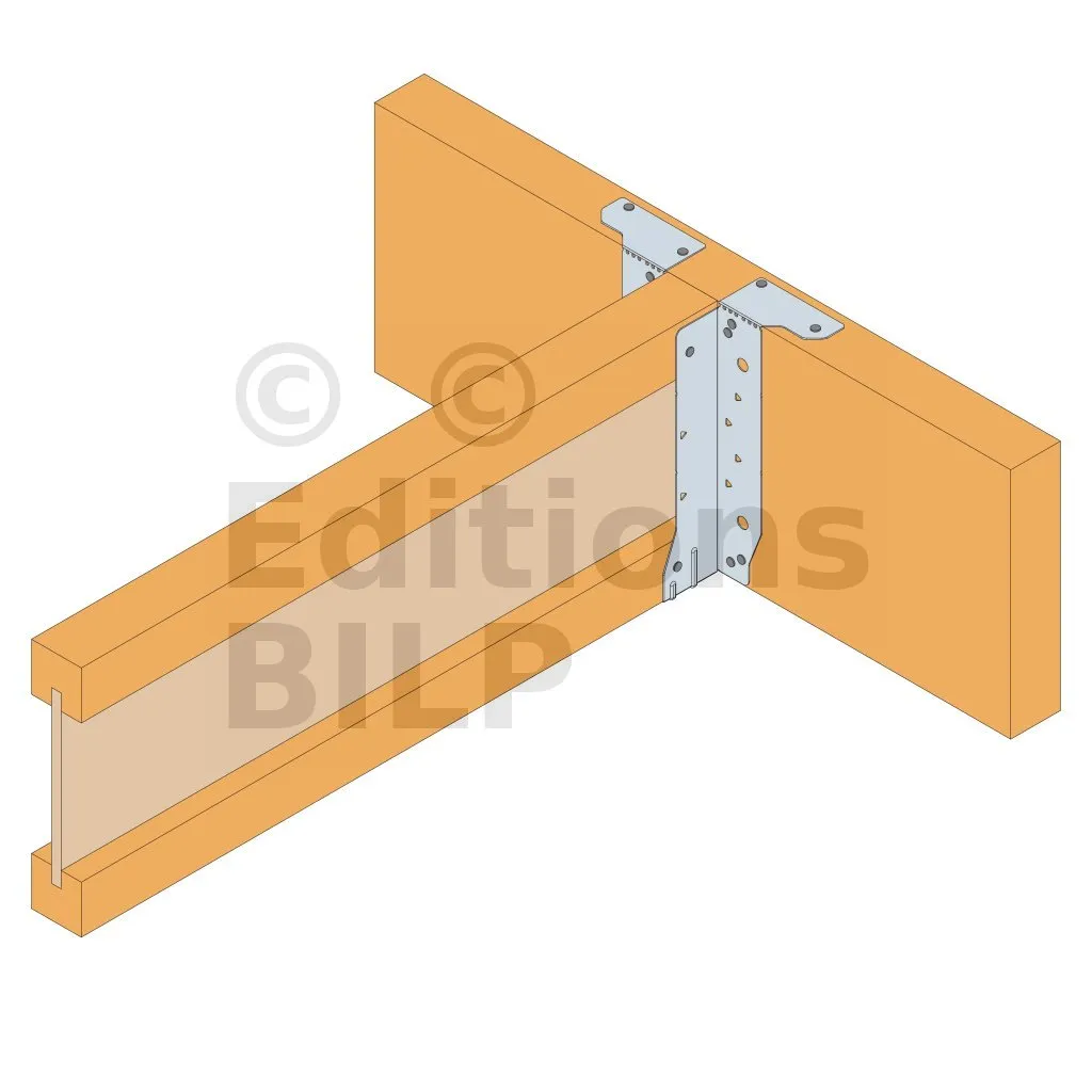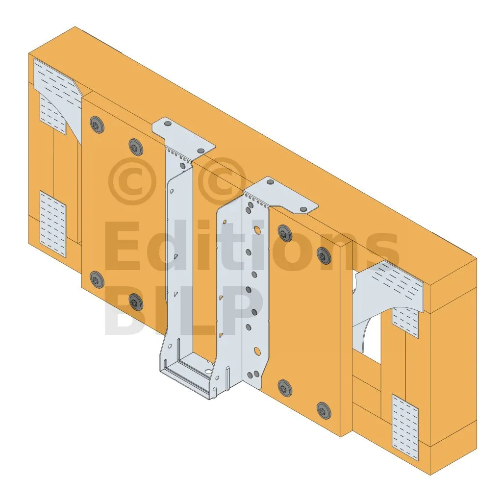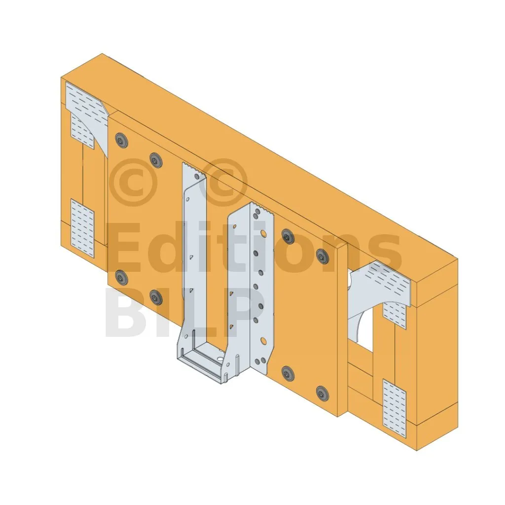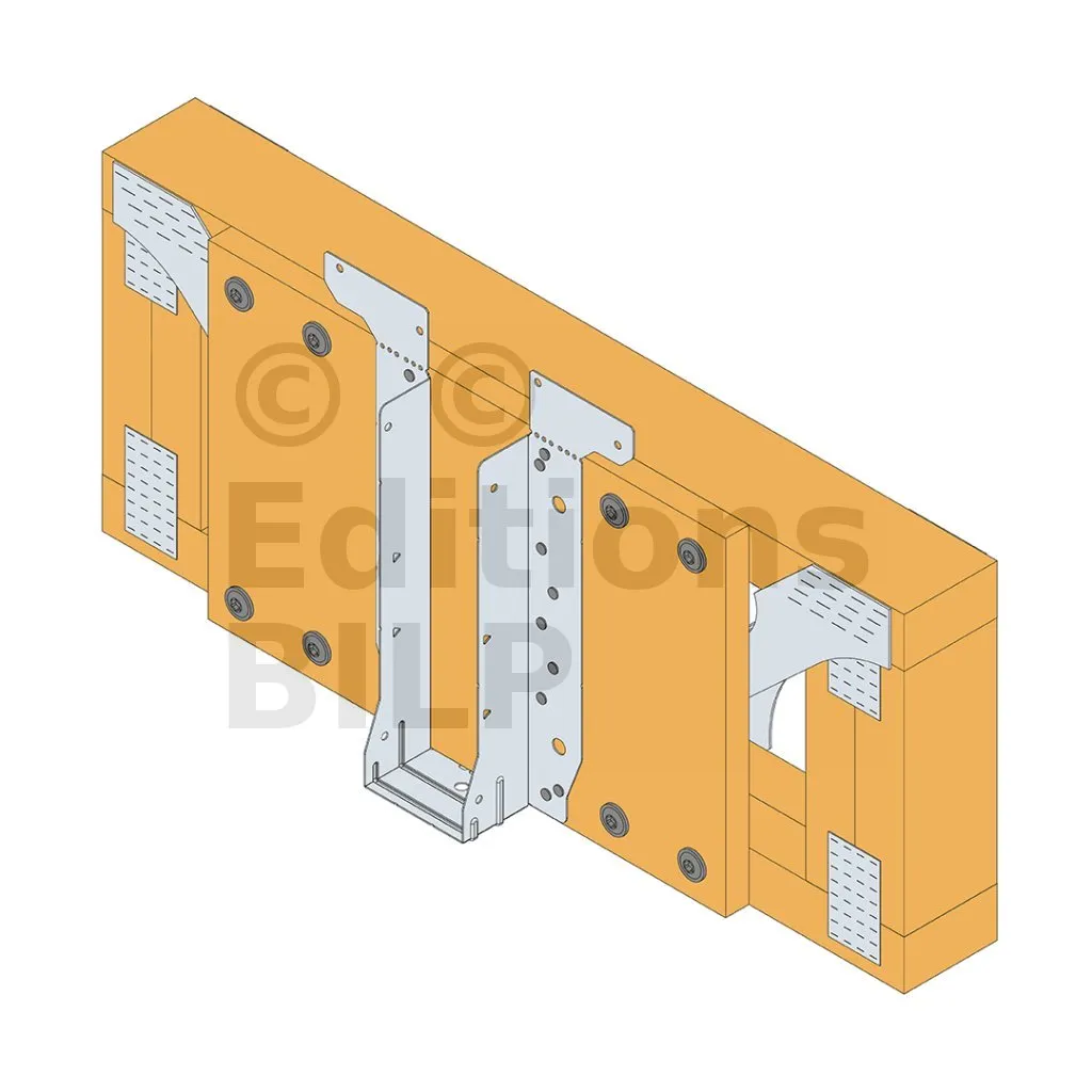 - Cette languette peut être pliée vers le haut pour les cas où le bas de solive n’est pas aligné sur le support.