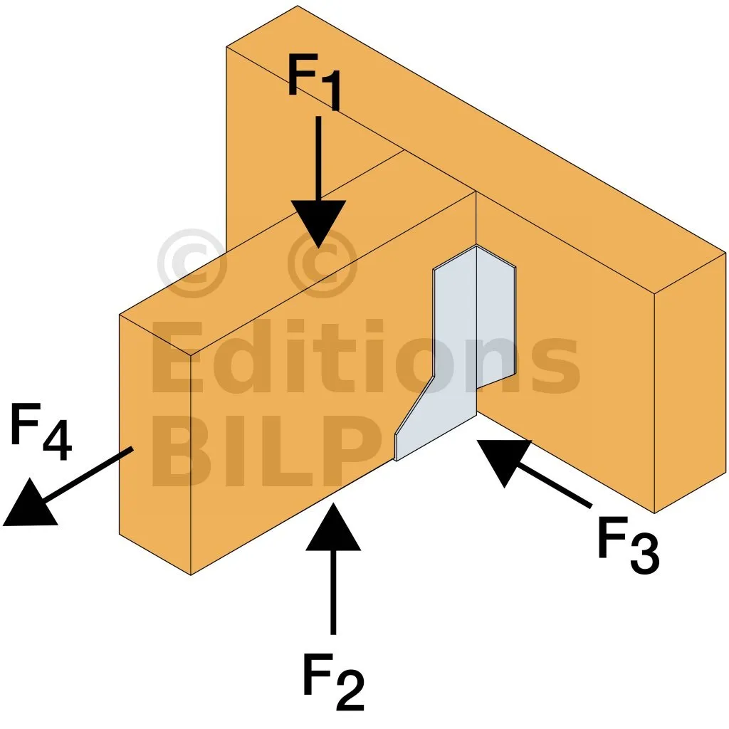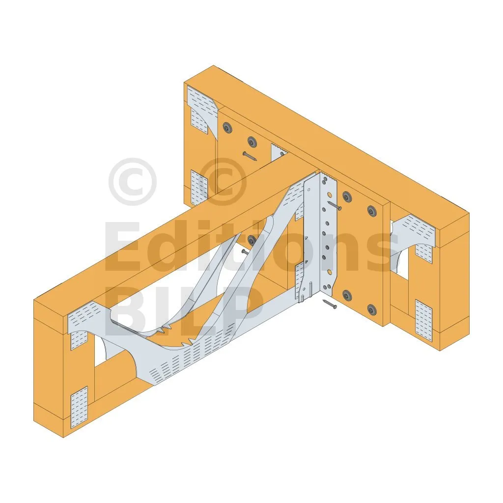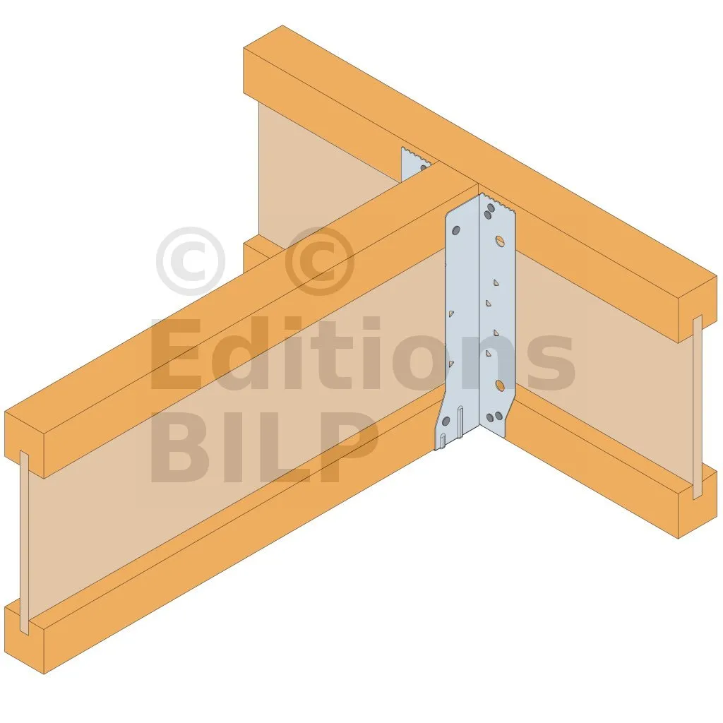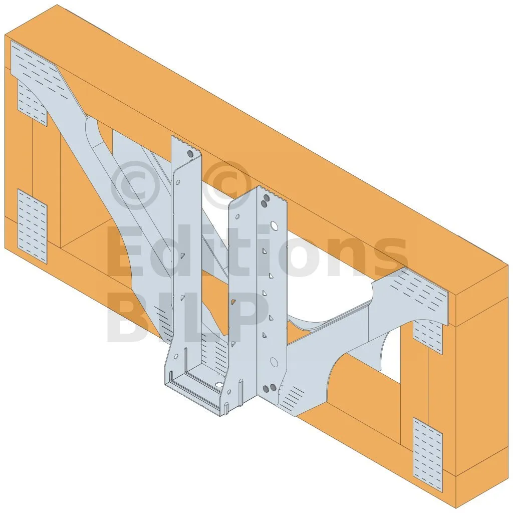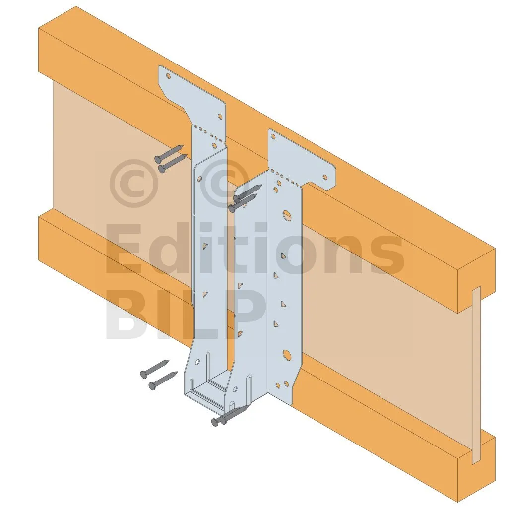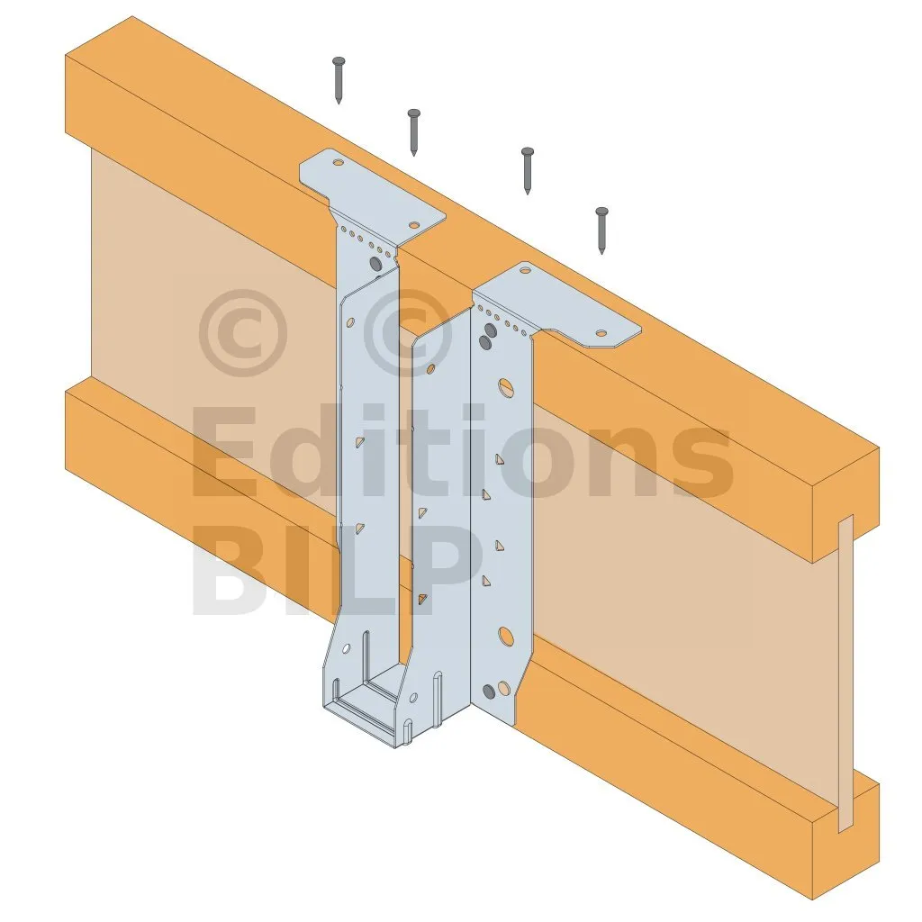 - Cette languette peut être pliée vers le haut pour les cas où le bas de solive n’est pas aligné sur le support.