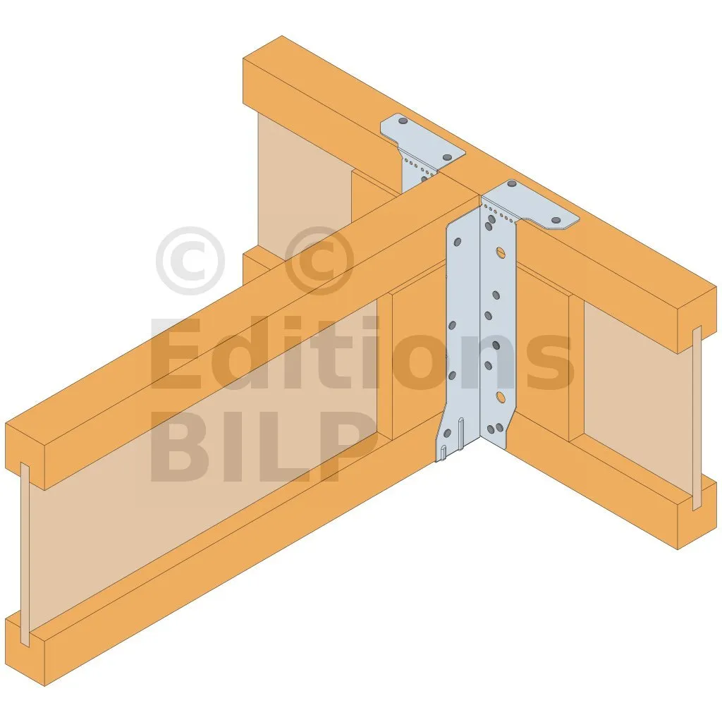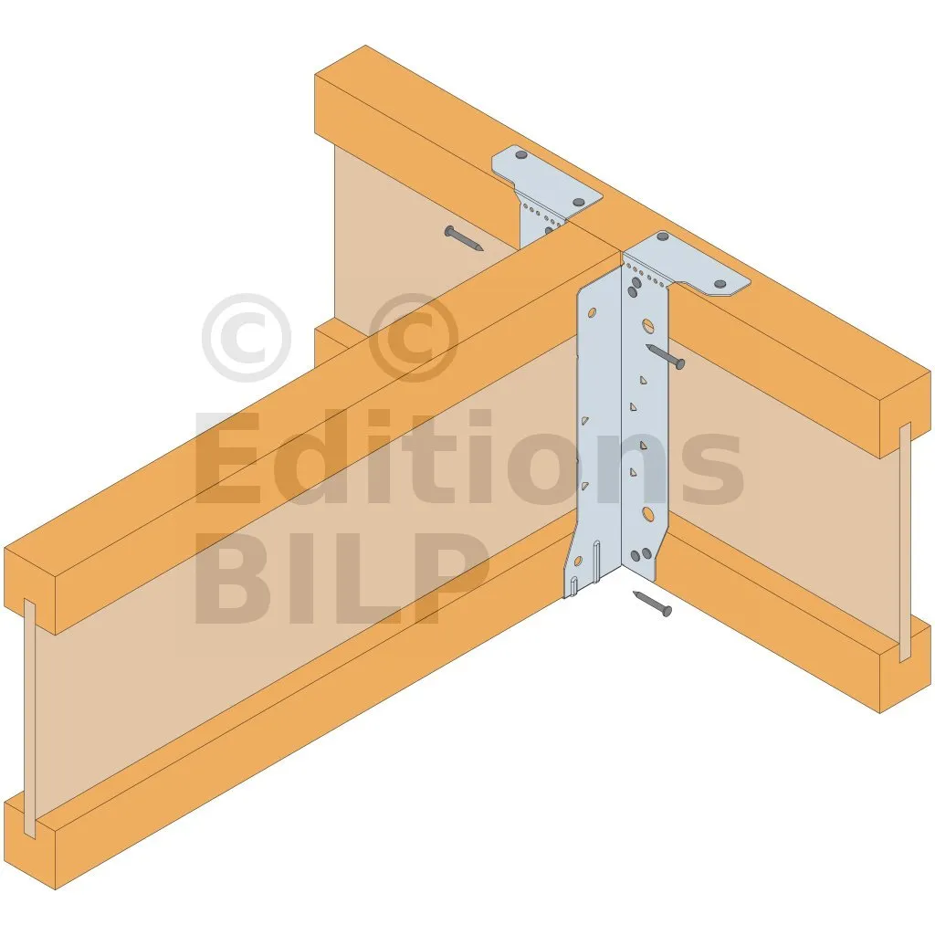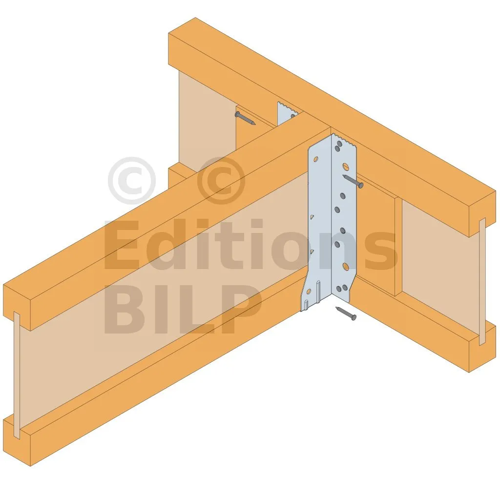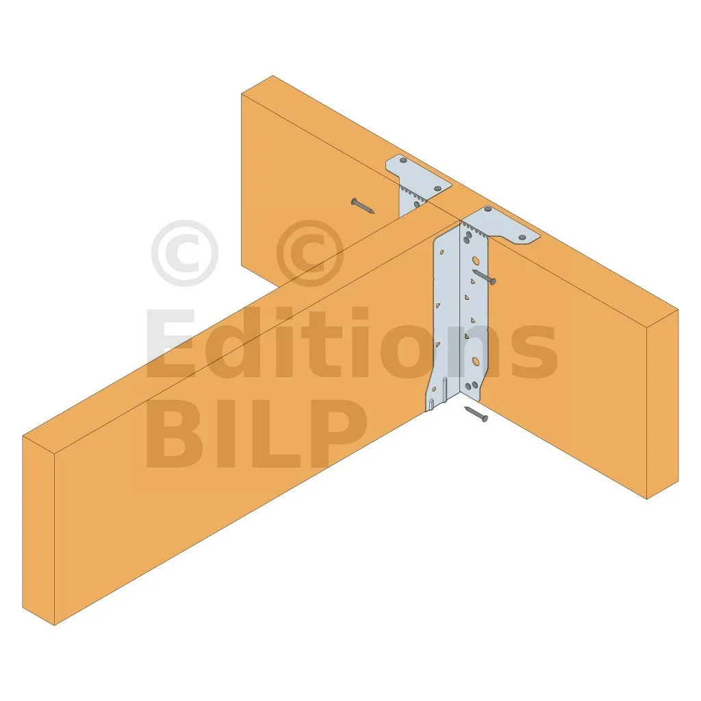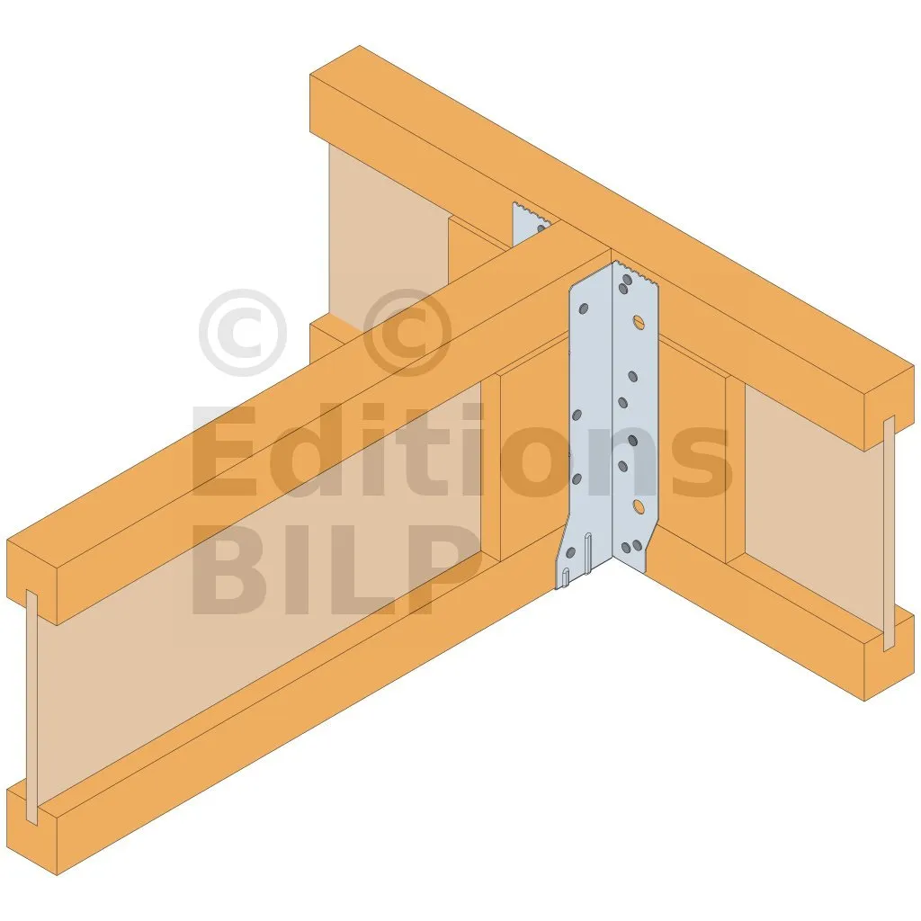 - Cette languette peut être pliée vers le haut pour les cas où le bas de solive n’est pas aligné sur le support.