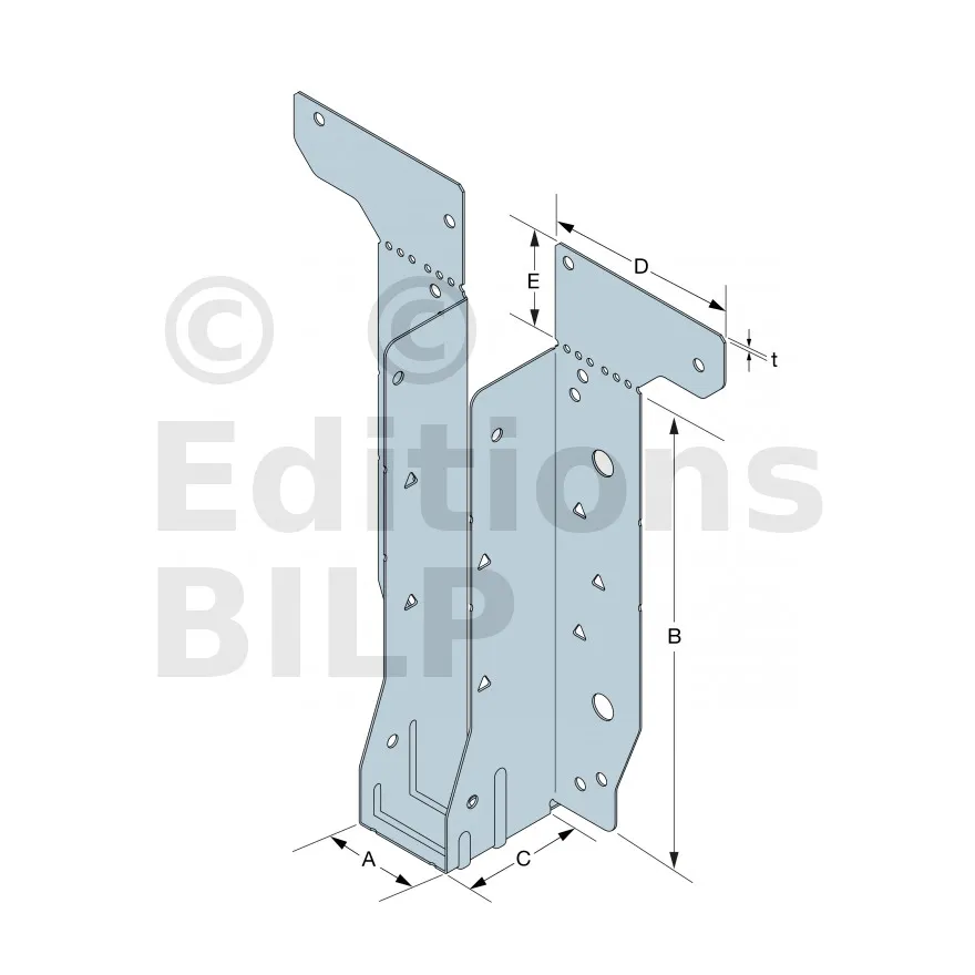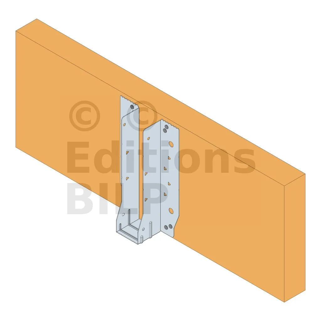 - Étrier fourni avec ses brides supérieures droites, pliables sur chantier afin de s’adapter à toutes les hauteurs de solives,