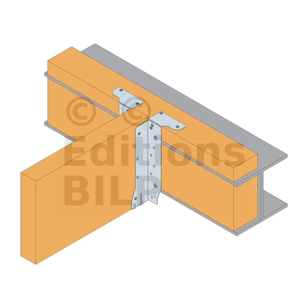 Fixation par les brides supérieures sur une poutre métallique ajourée avec renfort bois
