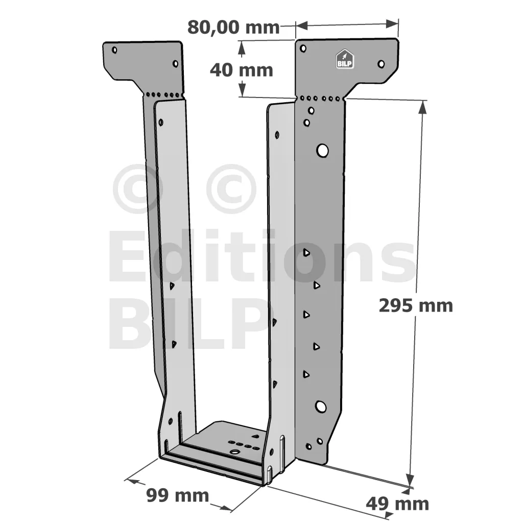 - Étrier fourni avec ses brides supérieures droites, pliables sur chantier afin de s’adapter à toutes les hauteurs de solives,