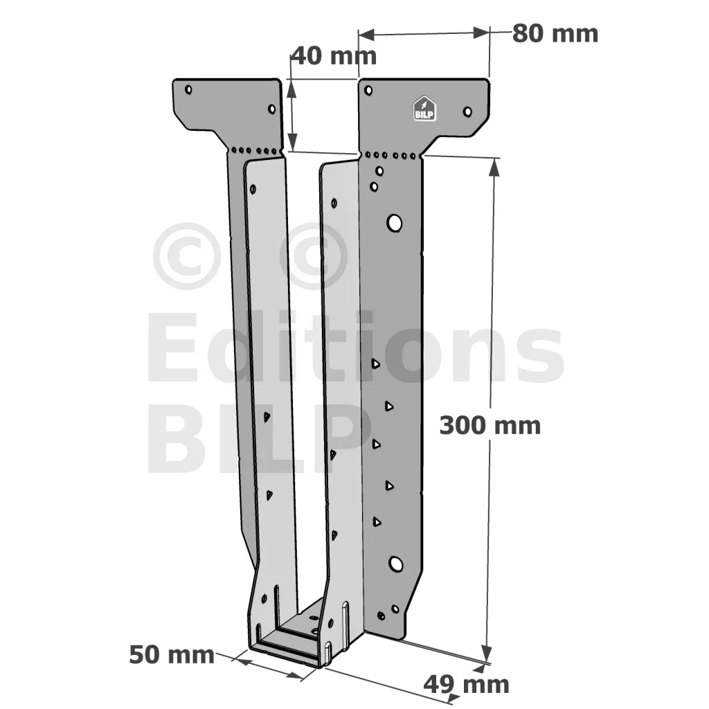 - Étrier fourni avec ses brides supérieures droites, pliables sur chantier afin de s’adapter à toutes les hauteurs de solives,