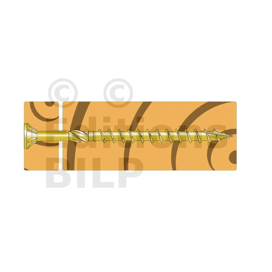- Tête fraisée avec des rainures sous tête pour une finition sans éclat,