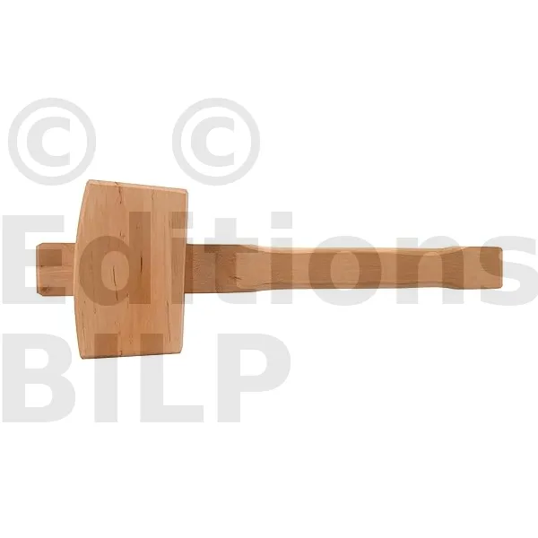 - Tête et manche en bois dur résistant.