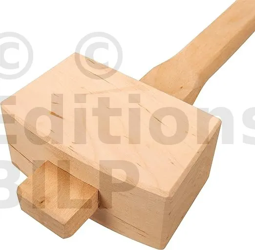 Le maillet des charpentiers. Tête de frappe angulaire 60 x 50 mm.