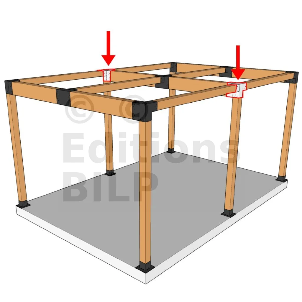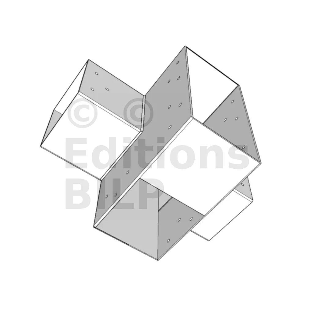 Il permet de raccorder deux poutres 120x120mm perpendiculairement à une grosse poutre 240x120mm, le tout étant supporté par un poteau vertical 120x120mm.
