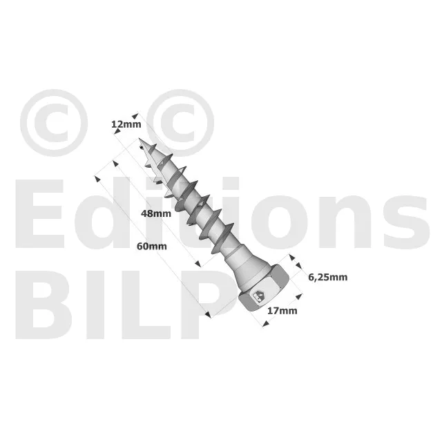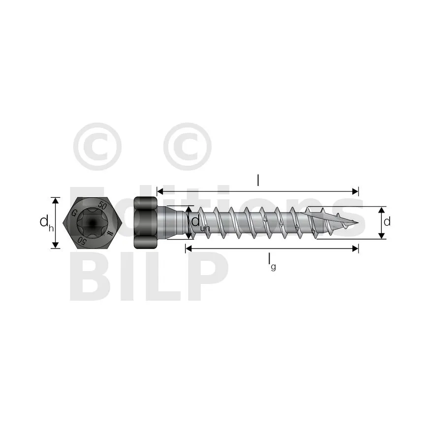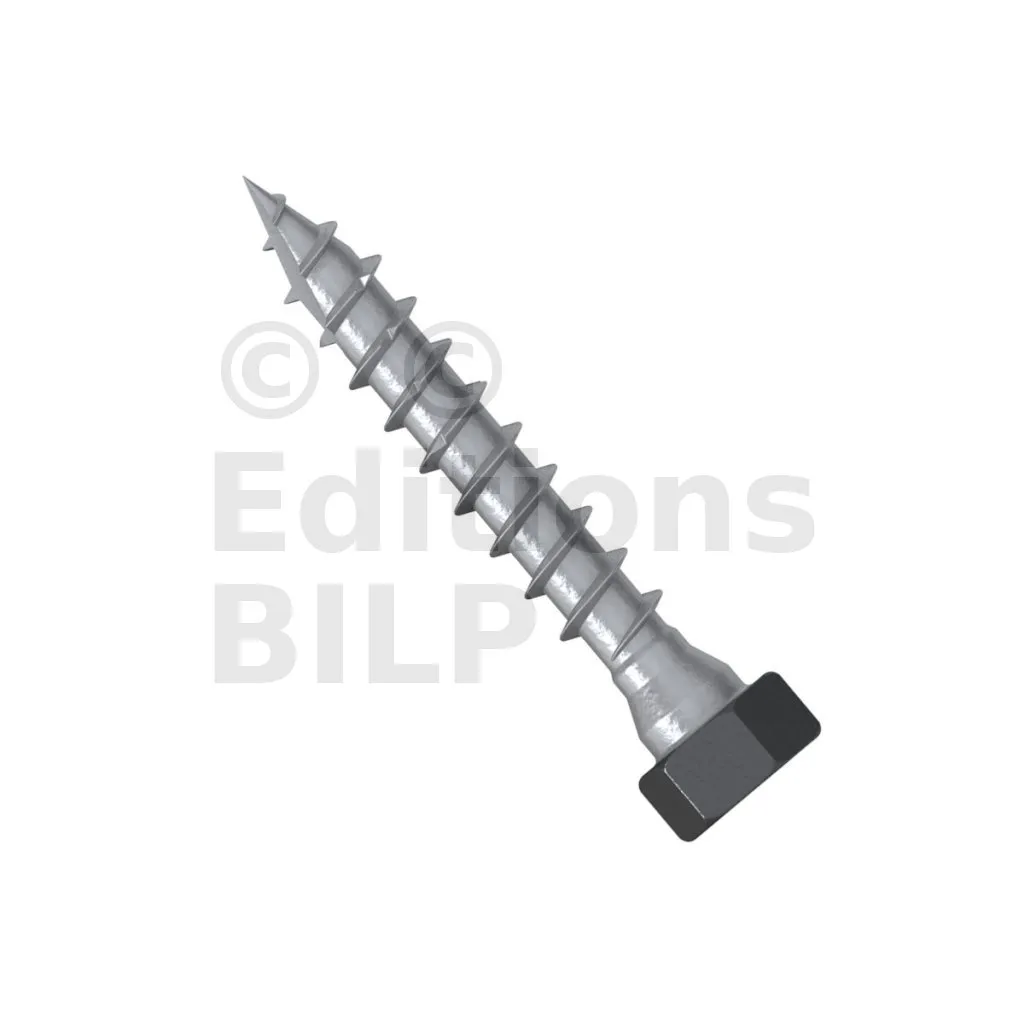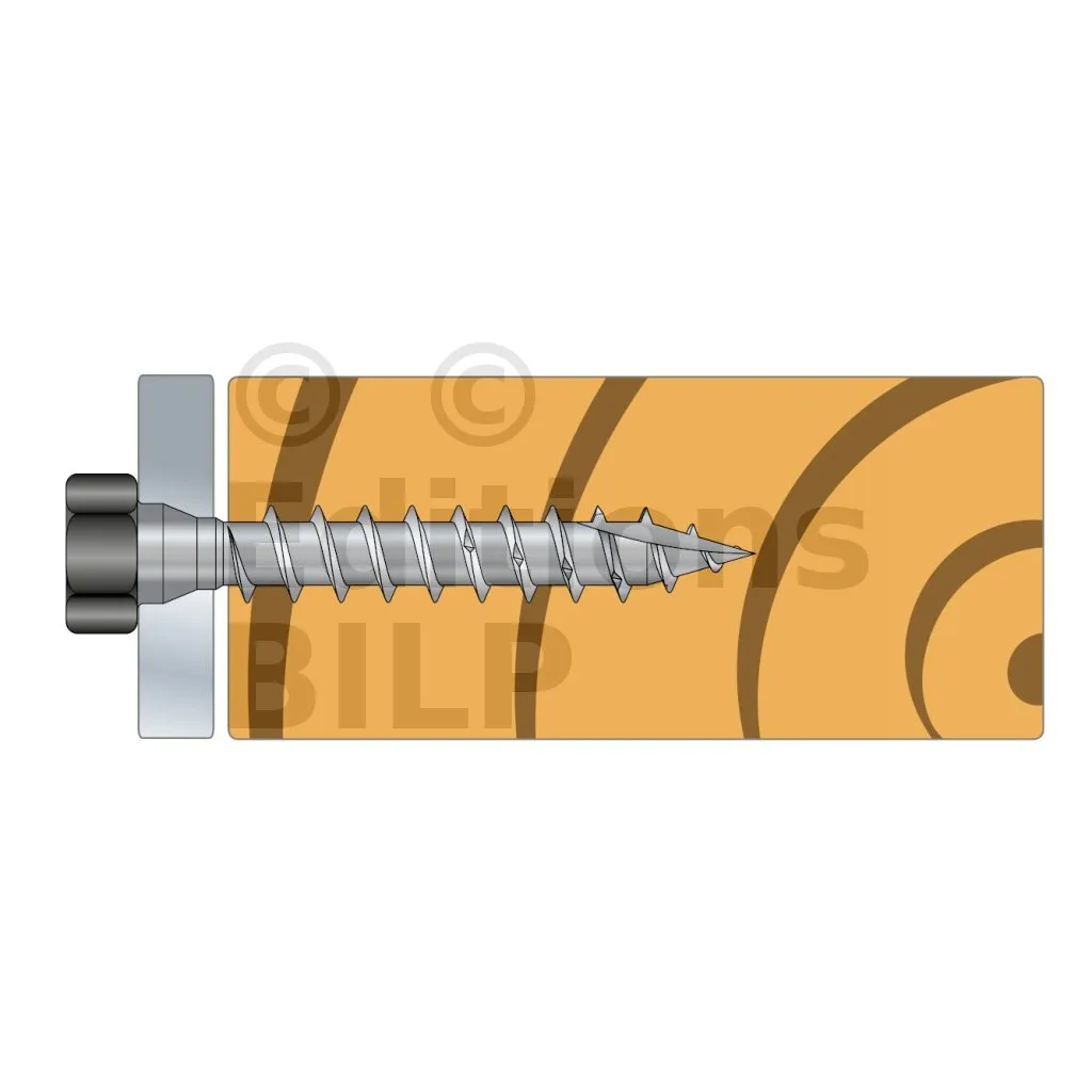- Tête hexagonale : parfait maintien de la plaque acier sur bois grâce à sa tête large,