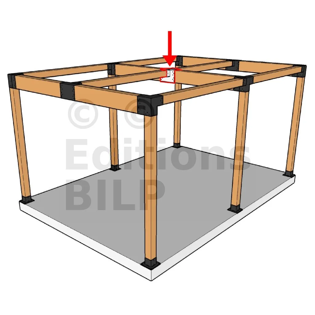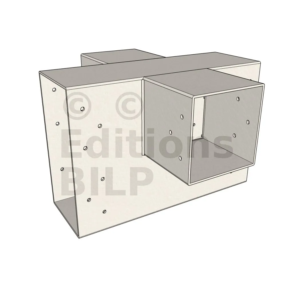 Il permet de raccorder deux poutres 120x120mm perpendiculairement à une grosse poutre 240x120mm, SANS être soutenu par un poteau vertical.