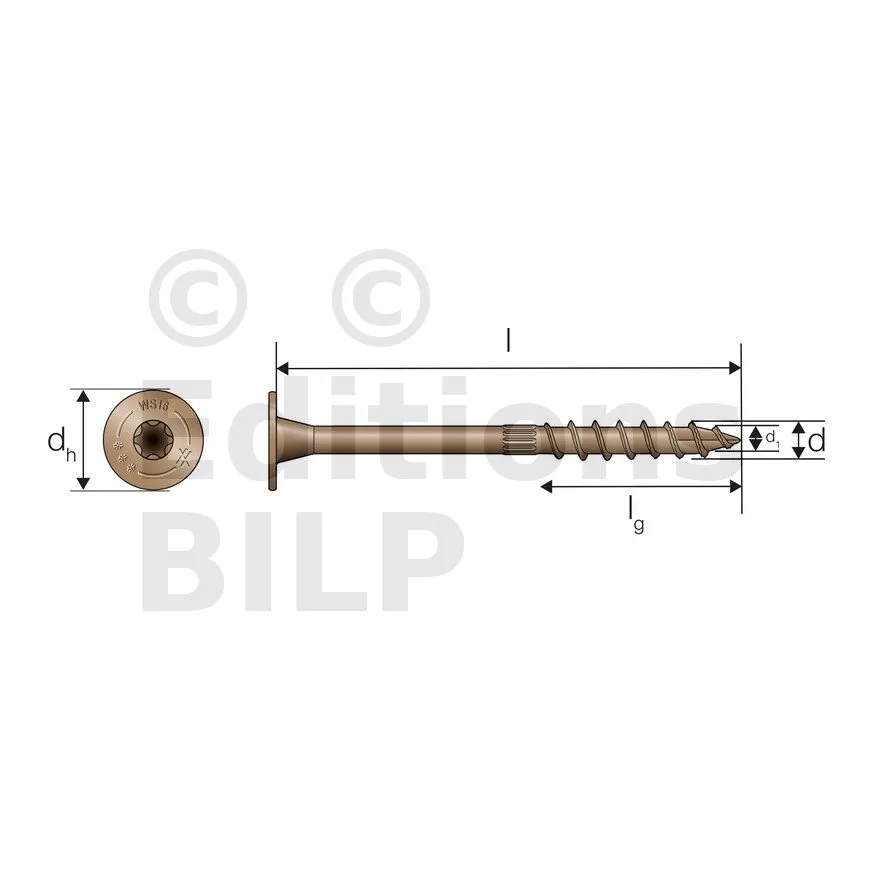 Vis à bois de construction EXTERIEUR SDWS - Diamètre 8mm