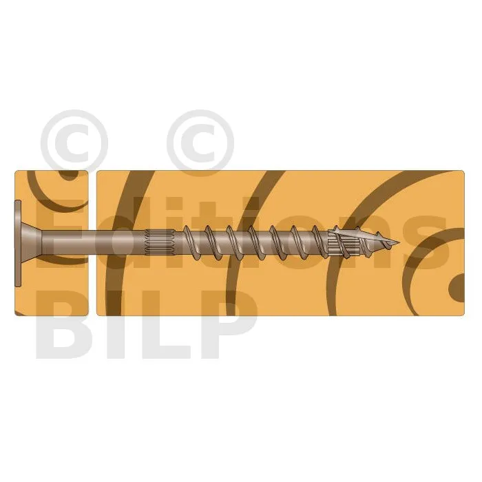 - Une vis dont l’axe est de 45 à 90° du fil du bois dans le cas des ESCR(XXX), et à 90° du fil du bois pour les autres vis.