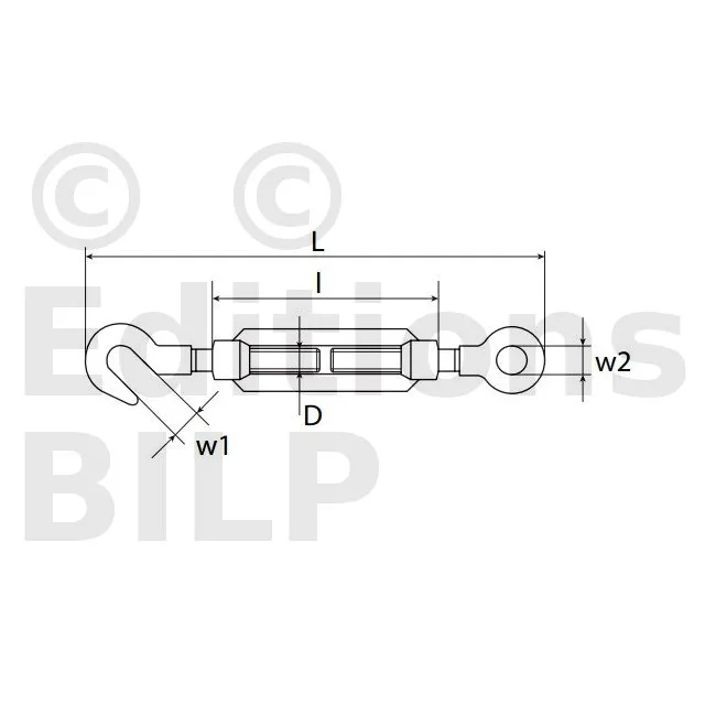 Tendeur de câble - crochet / œillet - INOX