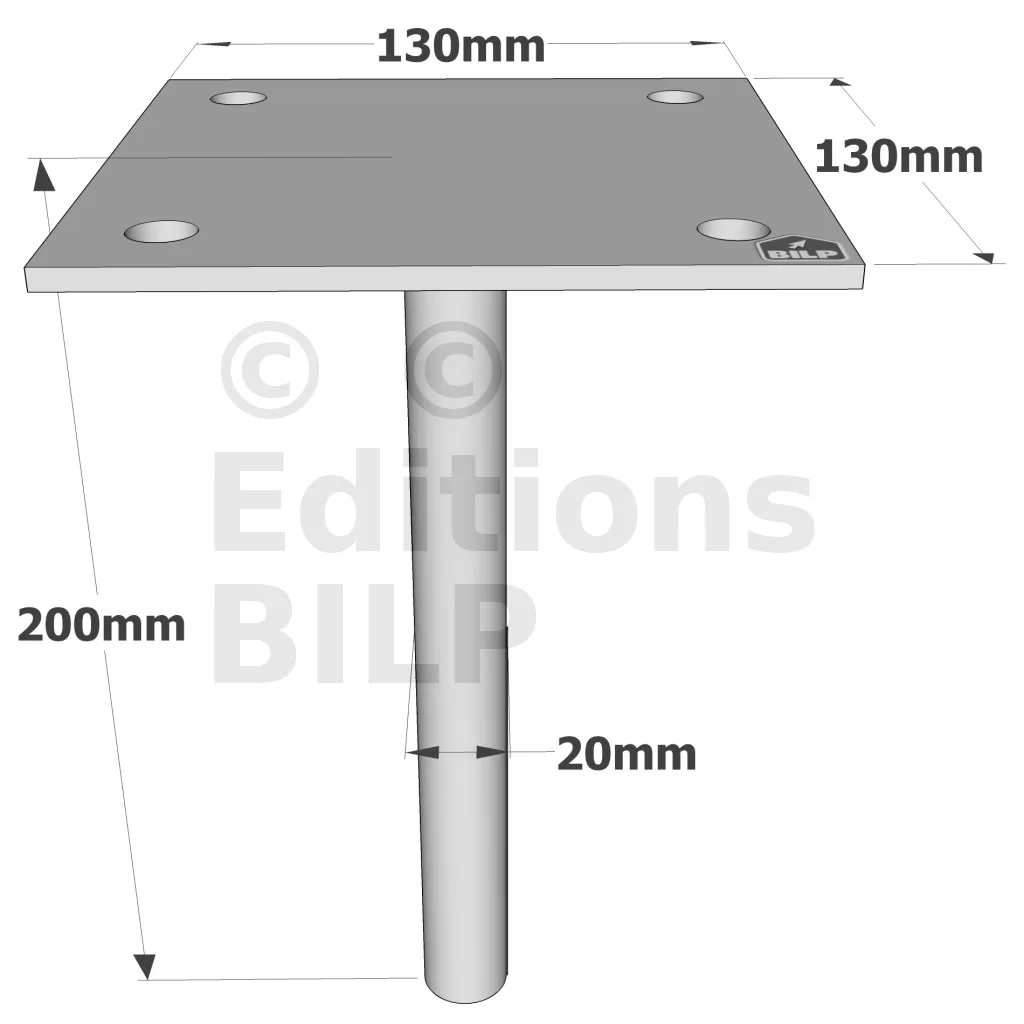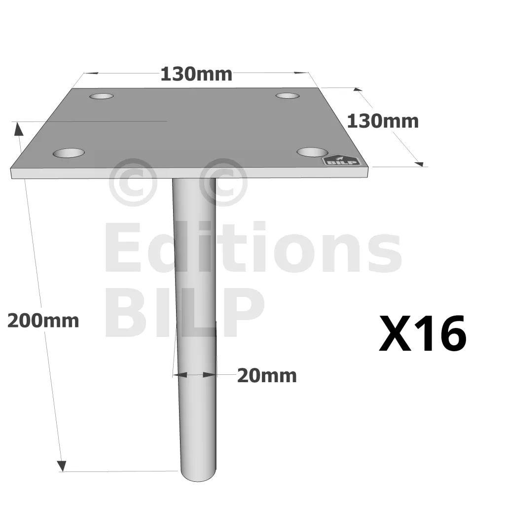 Pieds de poteau à sceller simple platine - Réf. PPSP130_16