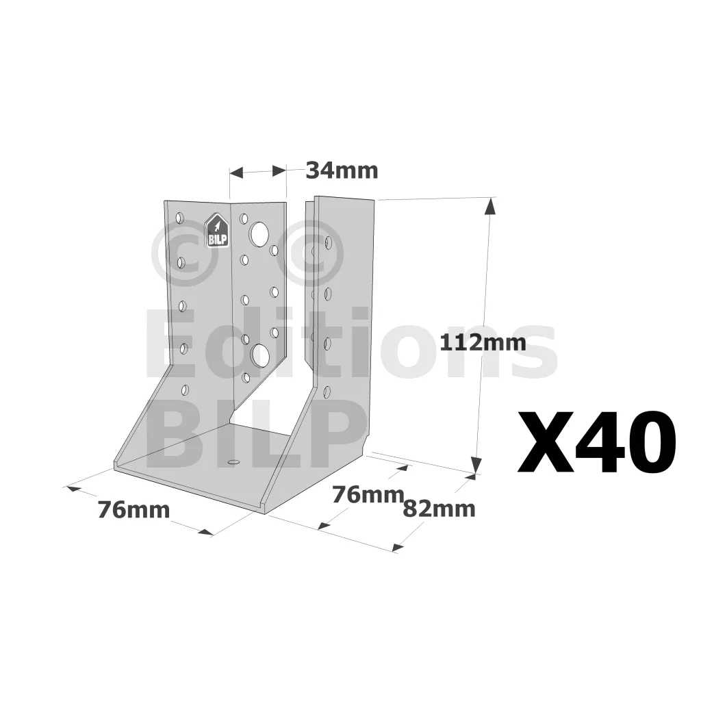 On admet une tolérance de 2 mm maximum entre l‘épaisseur du bois et la largeur du sabot. Exemple : un sabot plié à 76 mm peut porter une épaisseur de bois de 74 mm.