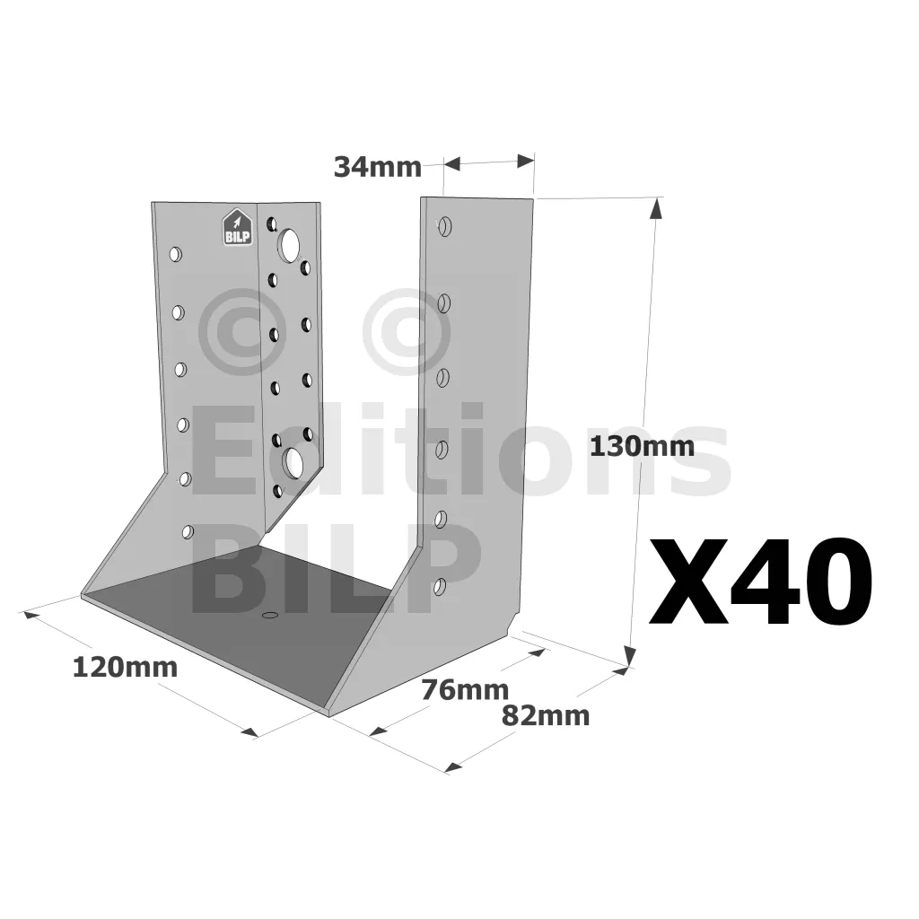 On admet une tolérance de 2 mm maximum entre l‘épaisseur du bois et la largeur du sabot. Exemple : un sabot plié à 76 mm peut porter une épaisseur de bois de 74 mm.