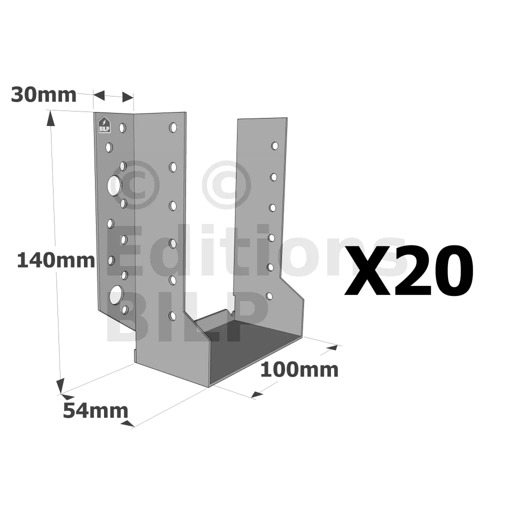 Sabots à ailes extérieures, gamme SBE ECONOMIQUE (épaisseur 1,5mm, profondeur 55mm) - Réf. SBE100/140_20
