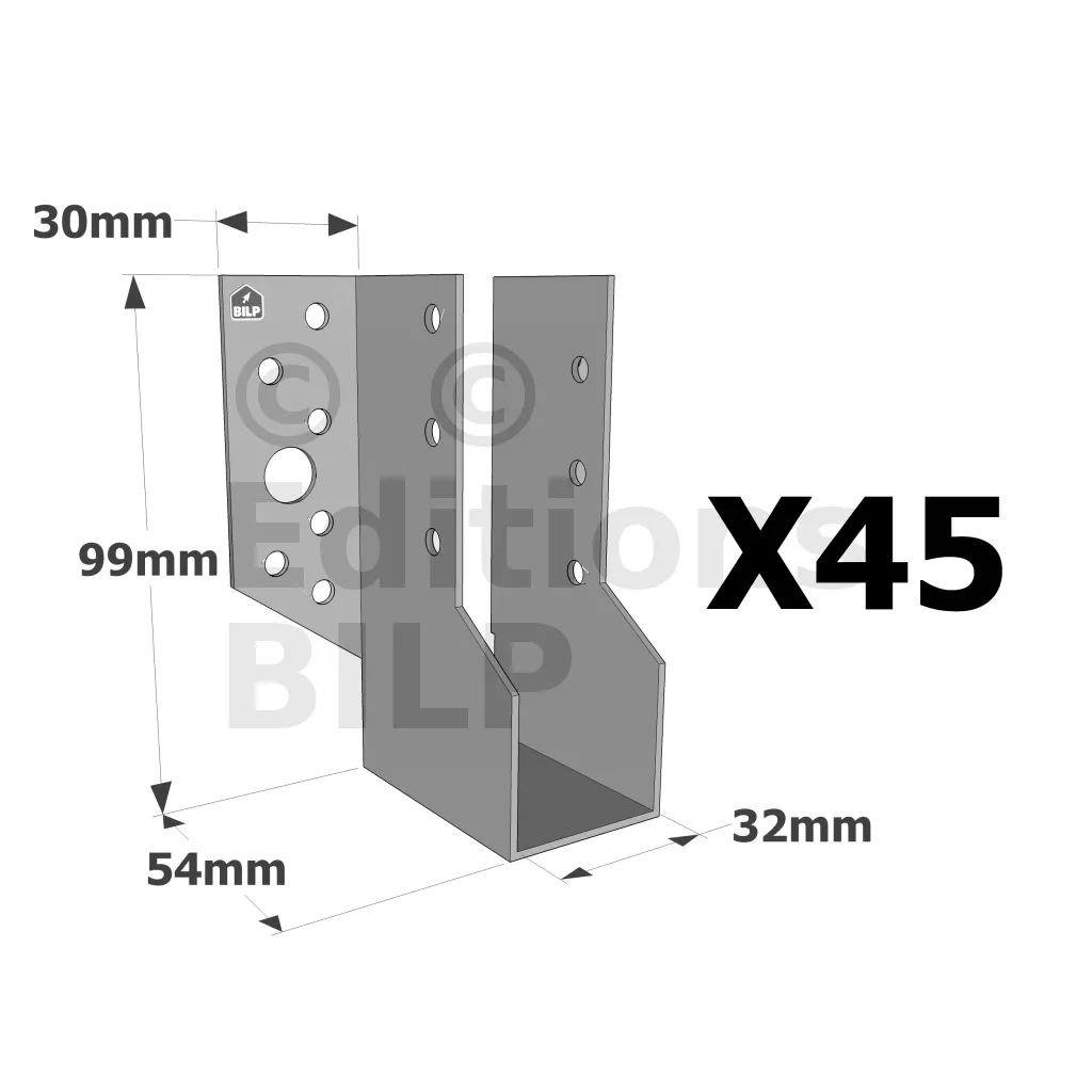Sabots à ailes extérieures, gamme SBE ECONOMIQUE (épaisseur 1,5mm, profondeur 55mm) - Réf. SBE32/99_45