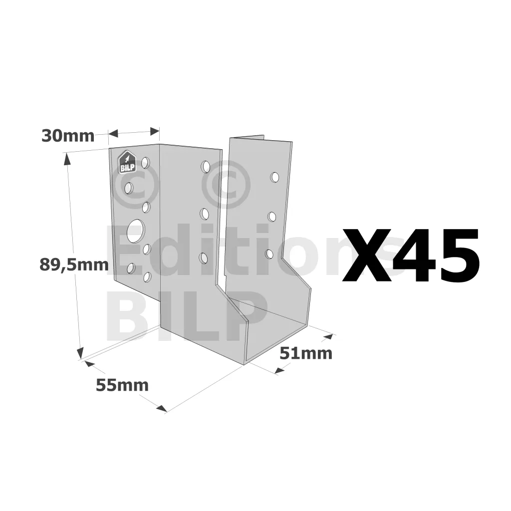 Sabots à ailes extérieures, gamme SBE ECONOMIQUE (épaisseur 1,5mm, profondeur 55mm) - Réf. SBE51/90_45