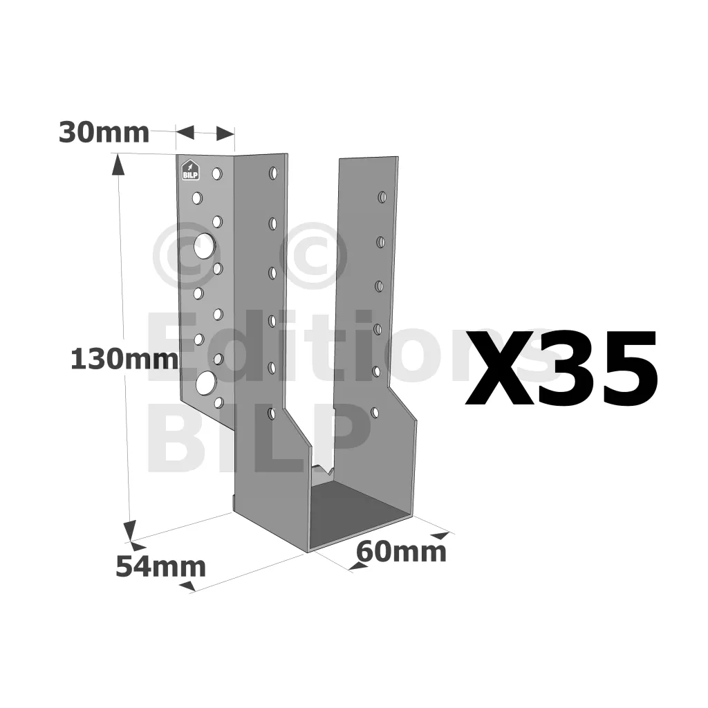 Sabots à ailes extérieures, gamme SBE ECONOMIQUE (épaisseur 1,5mm, profondeur 55mm) - Réf. SBE60/130_35