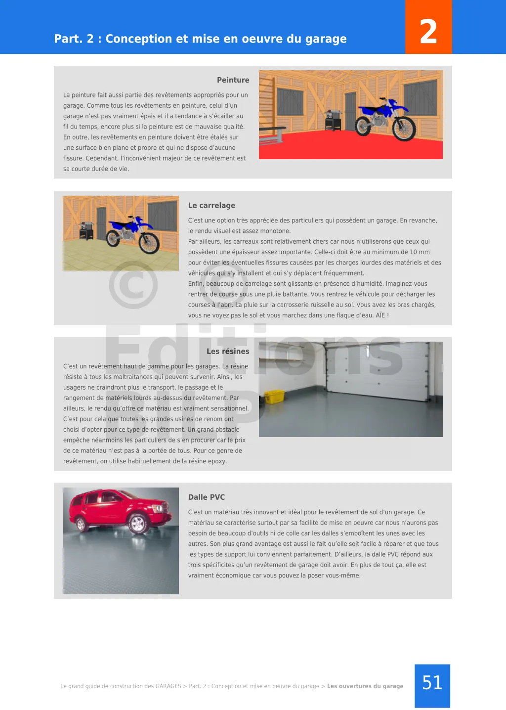 Des informations concrètes pour votre projet. Tous les secrets, tous les trucs et les astuces pour réussir votre garage. Toutes les techniques, tous les produits vous sont décrits de façon objective et indépendante. Des vues détaillées vous décrivent toutes les étapes de la construction.