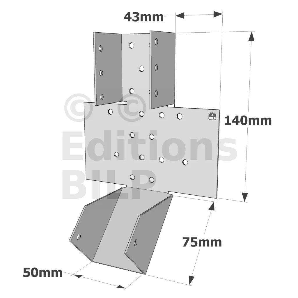 - Pannes : Utilisées pour les pannes, elles assurent une connexion robuste entre les éléments de charpente, même lorsque l’angle d’inclinaison doit être ajusté.