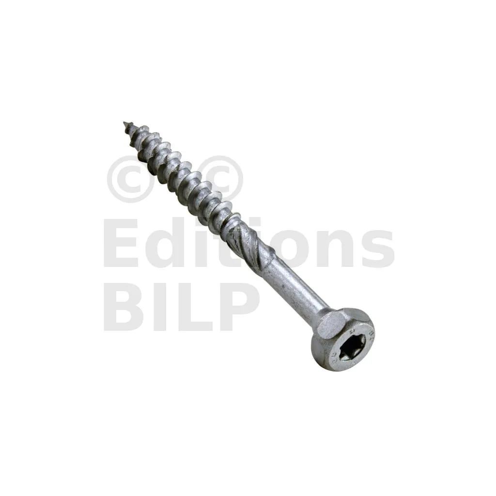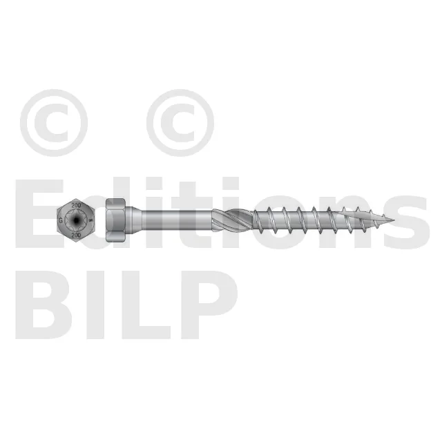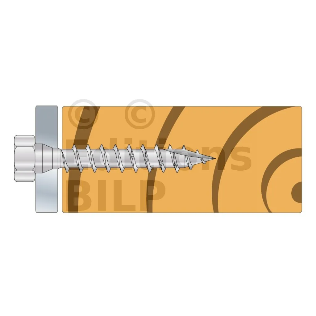 - Tête hexagonale : parfait maintien de la plaque acier sur bois grâce à sa tête large