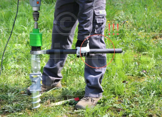 - La poignée permet à l’utilisateur de saisir l’outil fermement et d’appliquer le couple nécessaire pour visser la vis de fondation dans le sol. Sans une bonne poignée, il serait difficile d’exercer la force nécessaire pour enfoncer la vis.