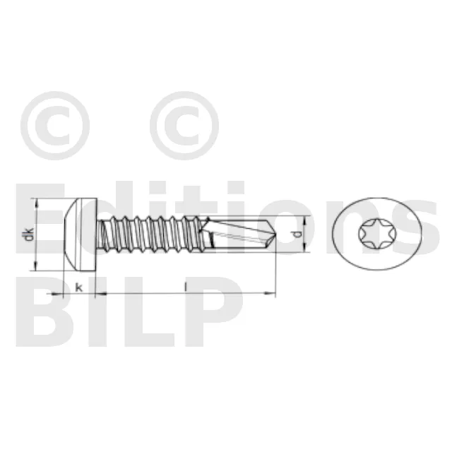 Vis autoperceuse à tête cylindrique bombée large empreinte TX INOX - Réf. 91664802202