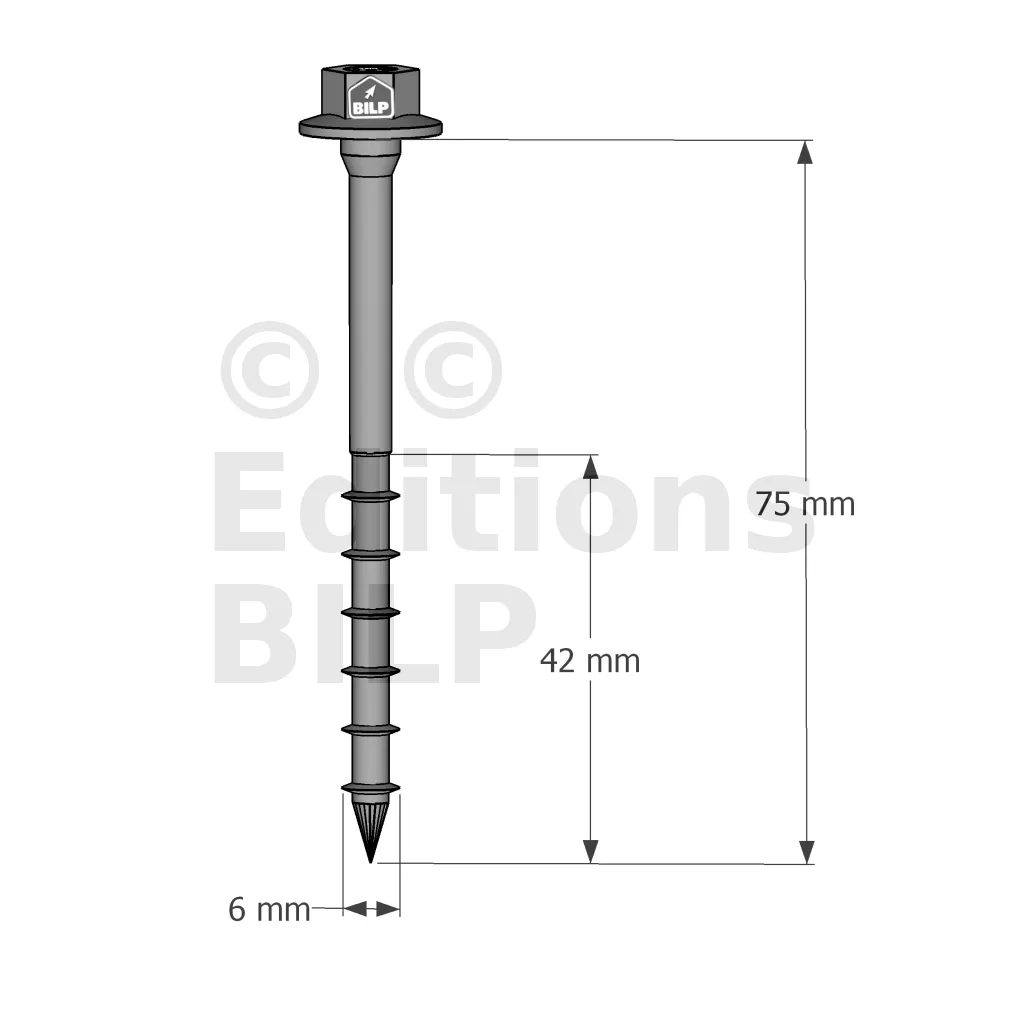Vis connecteurs acier sur bois, SSH6.0X75 - Réf. 75131