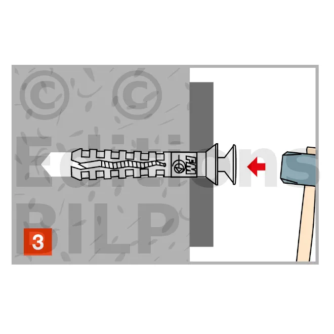 La cheville à frapper à colerette fraisée TSS convient pour la fixation rapide d’éléments légers sur supports divers.
